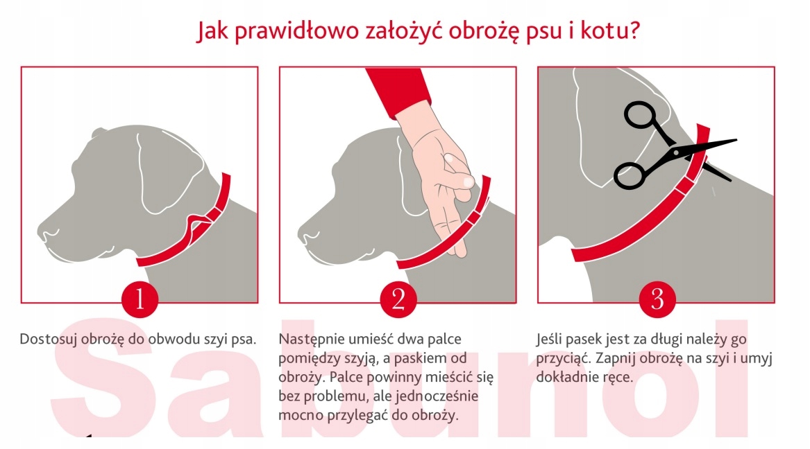 Як використовувати Нашийник необхідно вийняти з щільної упаковки, підігнати по окружності шиї собаки і надіти. Нашийник водонепроникний і повинен постійно залишатися на шиї тварини. Світлий наліт на нашийнику є природним результатом виробничого процесу і поступово зникає під час використання.