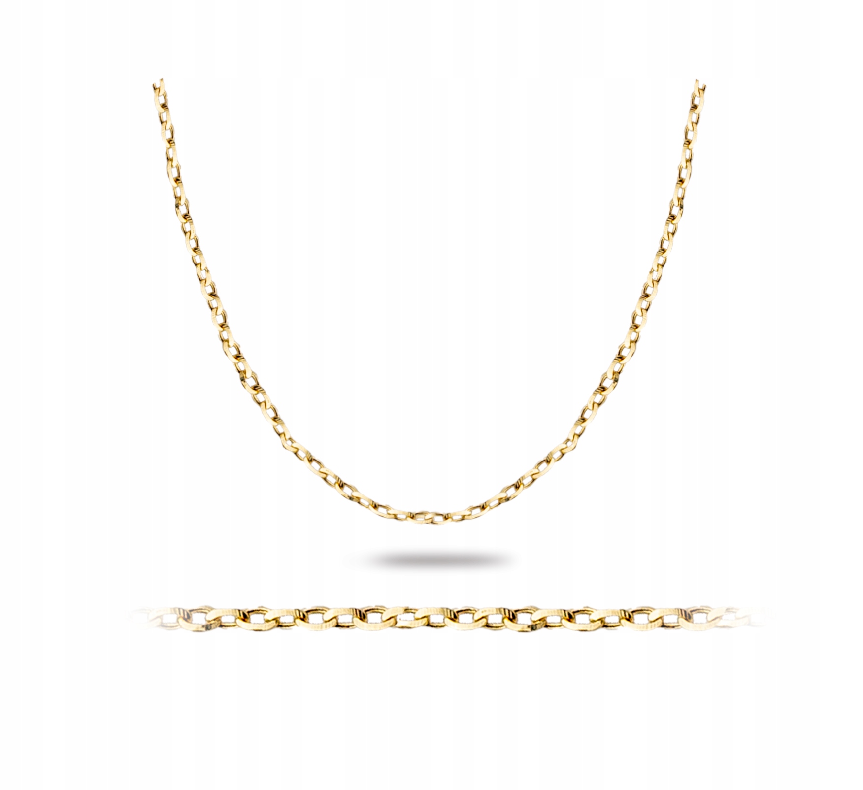 Гарний ланцюжок, який ідеально підходить як подарунок дитині чи дорослому. Виріб виготовлено з особливою ретельністю. Алмазне покриття дає змогу ланцюжку дуже гарно заломлювати світло та красиво виблискувати, тому він підходить як до класичної підвіски з жовтого золота, так і до підвіски з білого золота або виробів з камінням (цирконами/діамантами). Незважаючи на його візуальну делікатність, це справді дуже міцне плетіння.