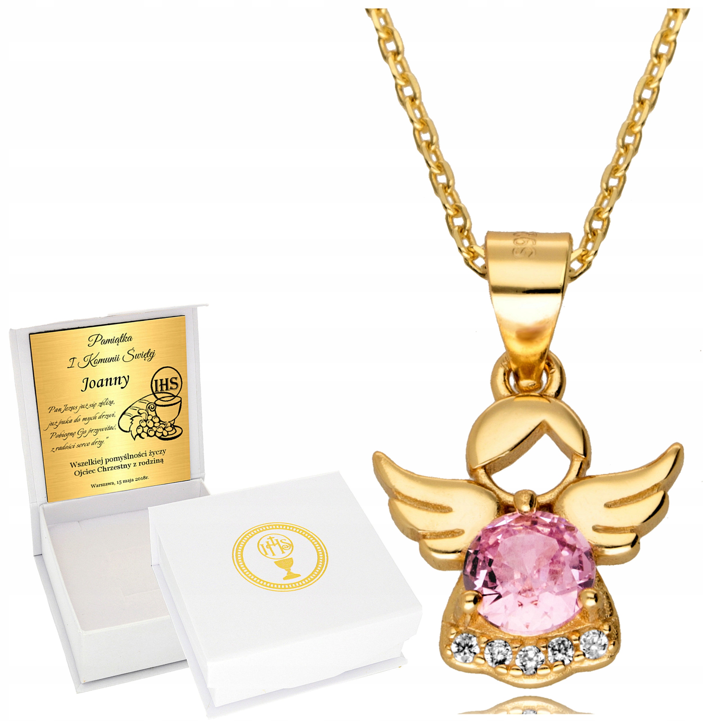 Золотий ланцюжок із ангелом 925 р. Ангел із троянд для хрещення та причастя з гравіюванням