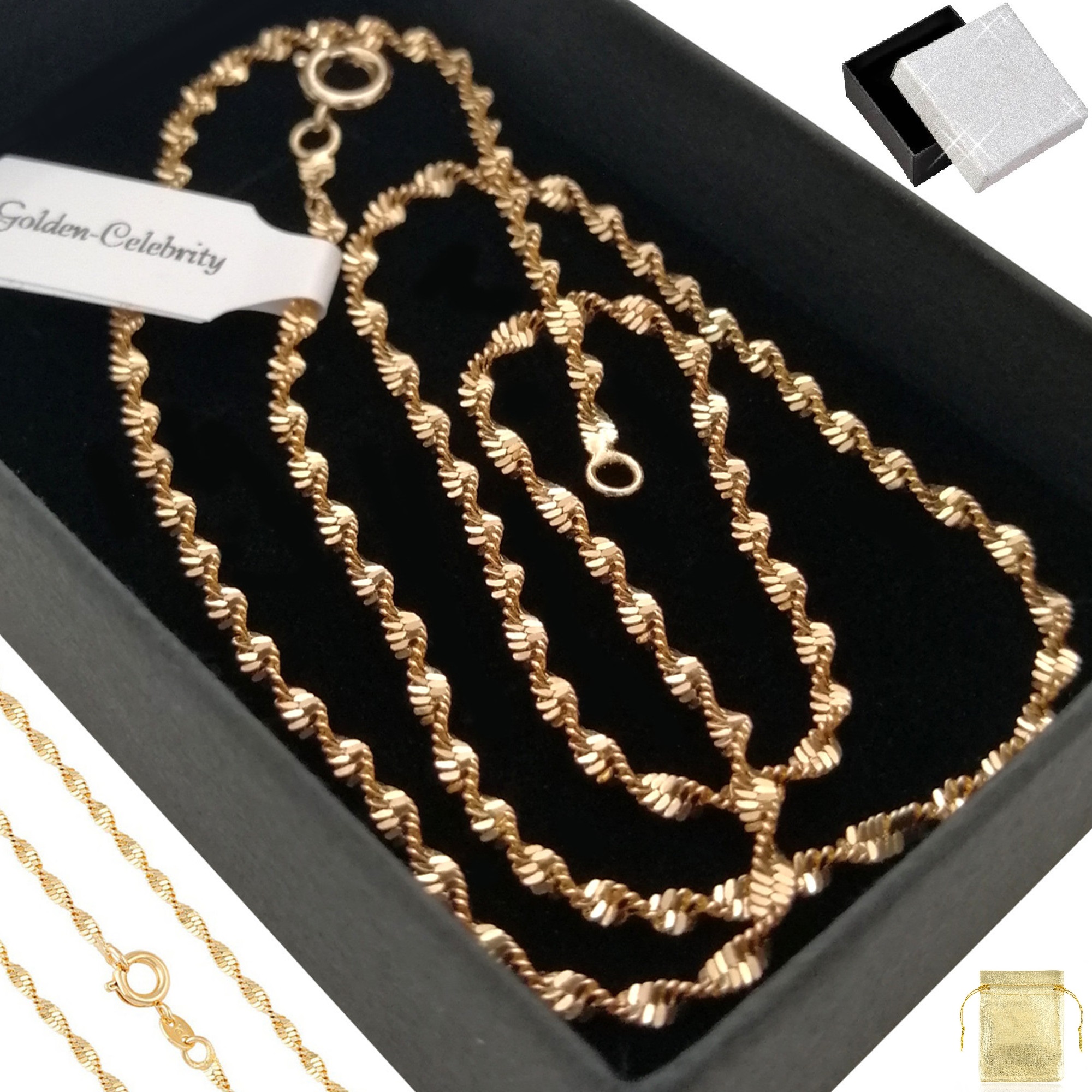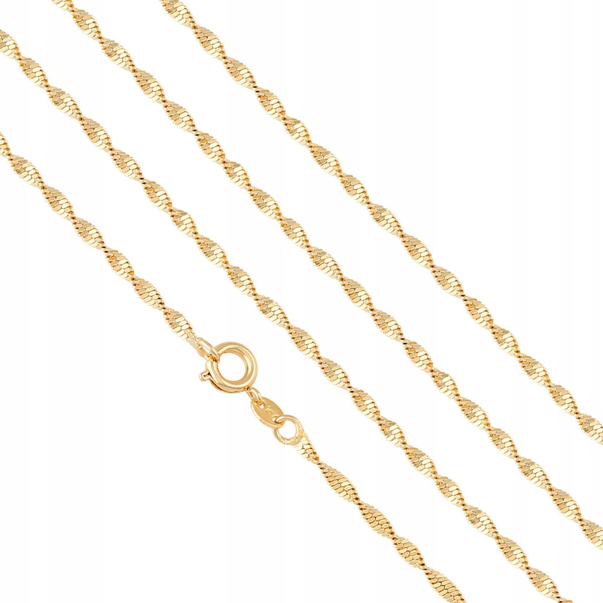 Представляємо вам унікальну жіночу сінгапурську мережу. Виріб виготовлено з хірургічної сталі найвищої якості. Весь предмет покритий справжнім 18-каратним золотом. Набір також включає письмову гарантію. Цю модель ланцюжка неодмінно оцінить кожна жінка. Виріб міцний і міцний, тому прослужить довго.