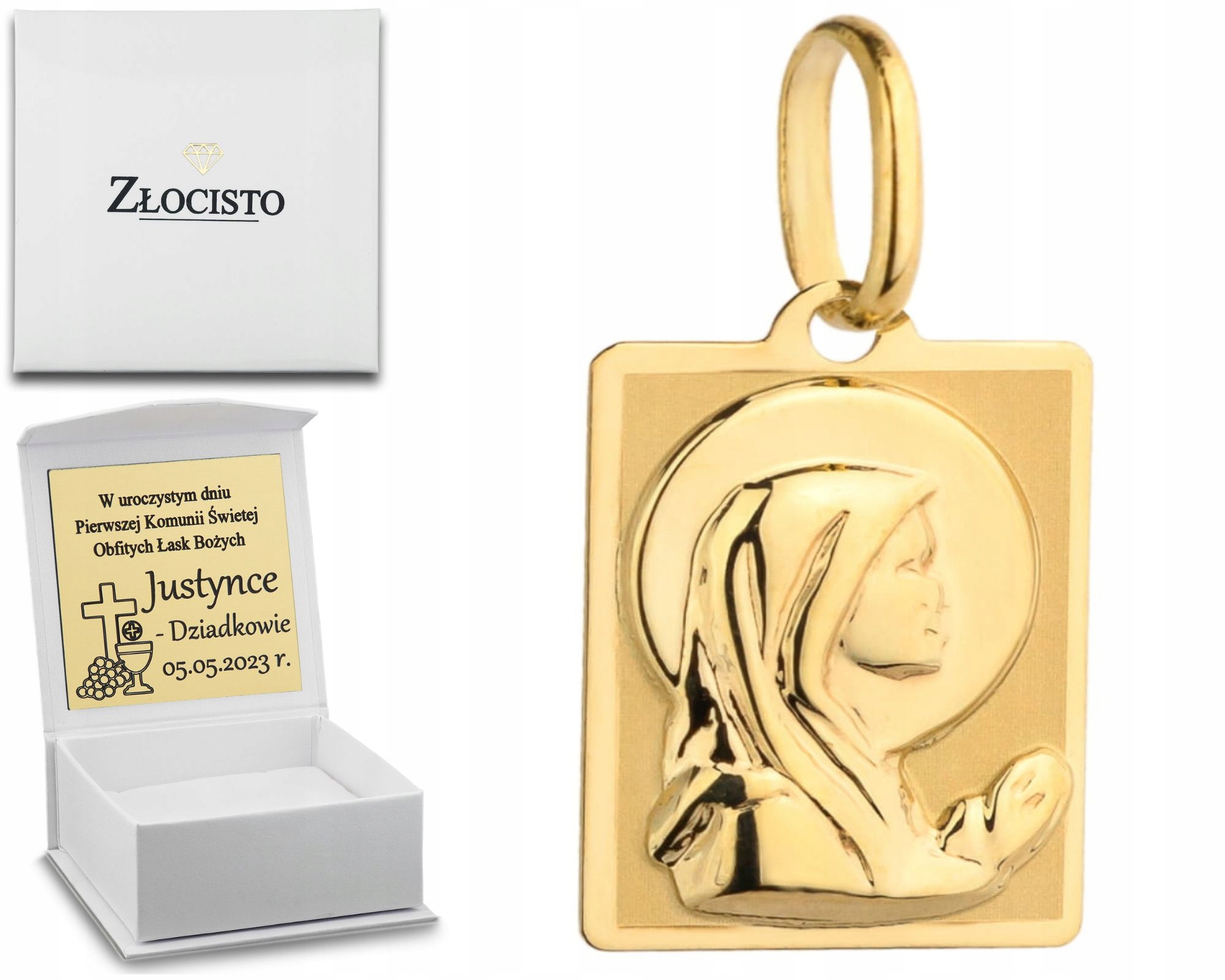ЗОЛОТИЙ МЕДАЛЬЙОН ПІДВІСКА МАТИ БОЖЕСТВЕННА, ЩО МОЛИТЬСЯ 585 ГРАВЮРА ХРЕЩЕННЯ ПРИЧАСТЯ