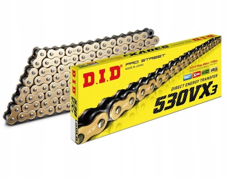 DID530VX3 - це нове покоління, яке замінює ланцюг DID530VX2. Внутрішні плитки зміцнювали, що дозволило отримати 8% більшу стійкість до розтягування до її попередників. Зміни, що використовуються в матеріальному складі X-кільцевих з'єднань, дозволяли поліпшити їх ущільнювальні властивості, а також опір споживання на 5%.