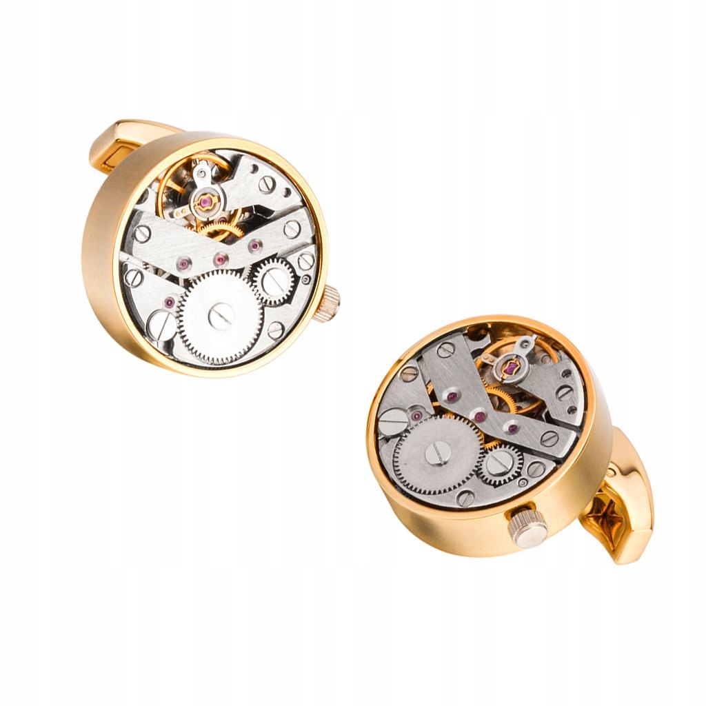 Пара запонок у формі годинника з механічним механізмом.