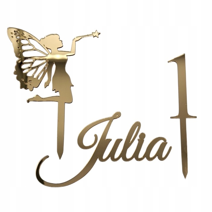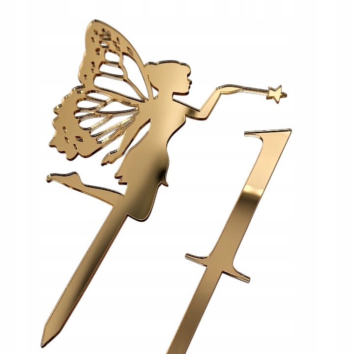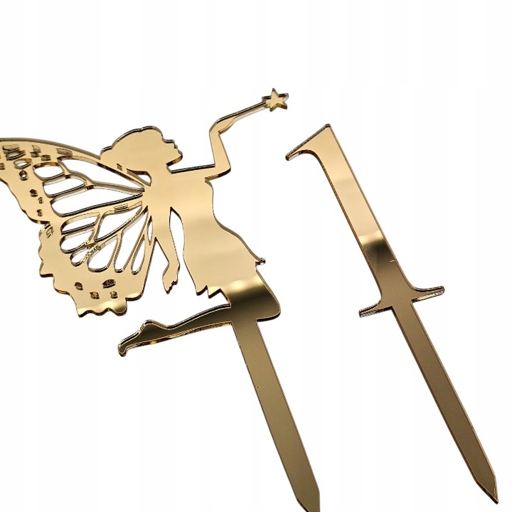 Золотий топпер, набір прикрас для торта, ФЕЯ, ВІК + ІМ'Я, золоте дзеркало