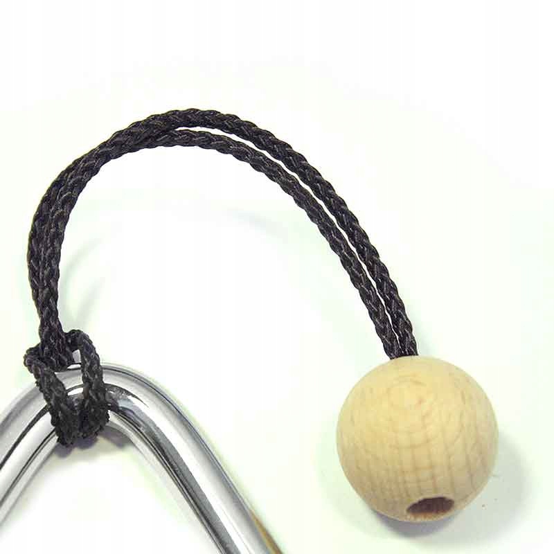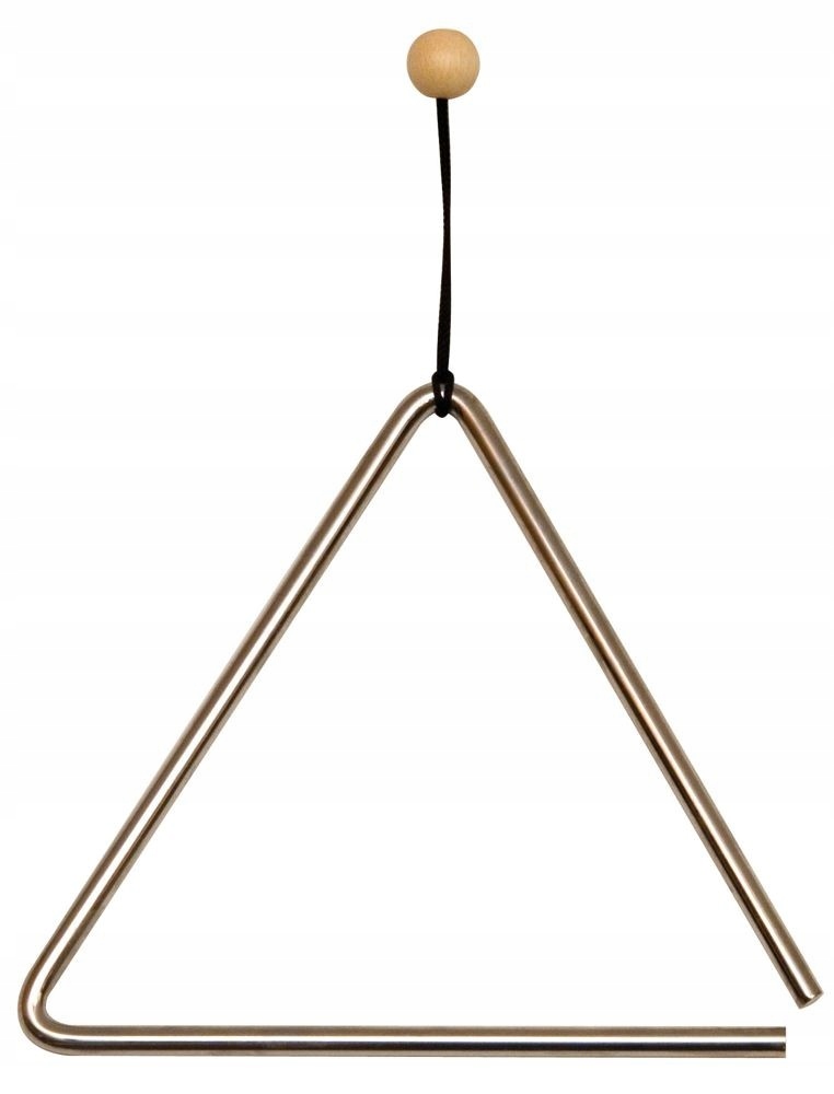 Трикутник зі спеціальної (гарно звучить) сталі, розміром 15 см, з кулькою на шнурку для зручнішого захоплення. У комплект входить металева палиця з ручкою з бука.