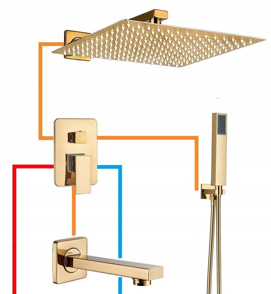 Представляємо вам душовий набір прихованого монтажу Gold POLER - версія з BOX, латунною душовою лійкою, регульованим тримачем душової лійки та додатковим виливом