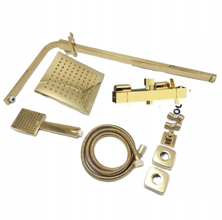 Стильний і сучасний душ комплект в кольорі красивого полірованого золота .