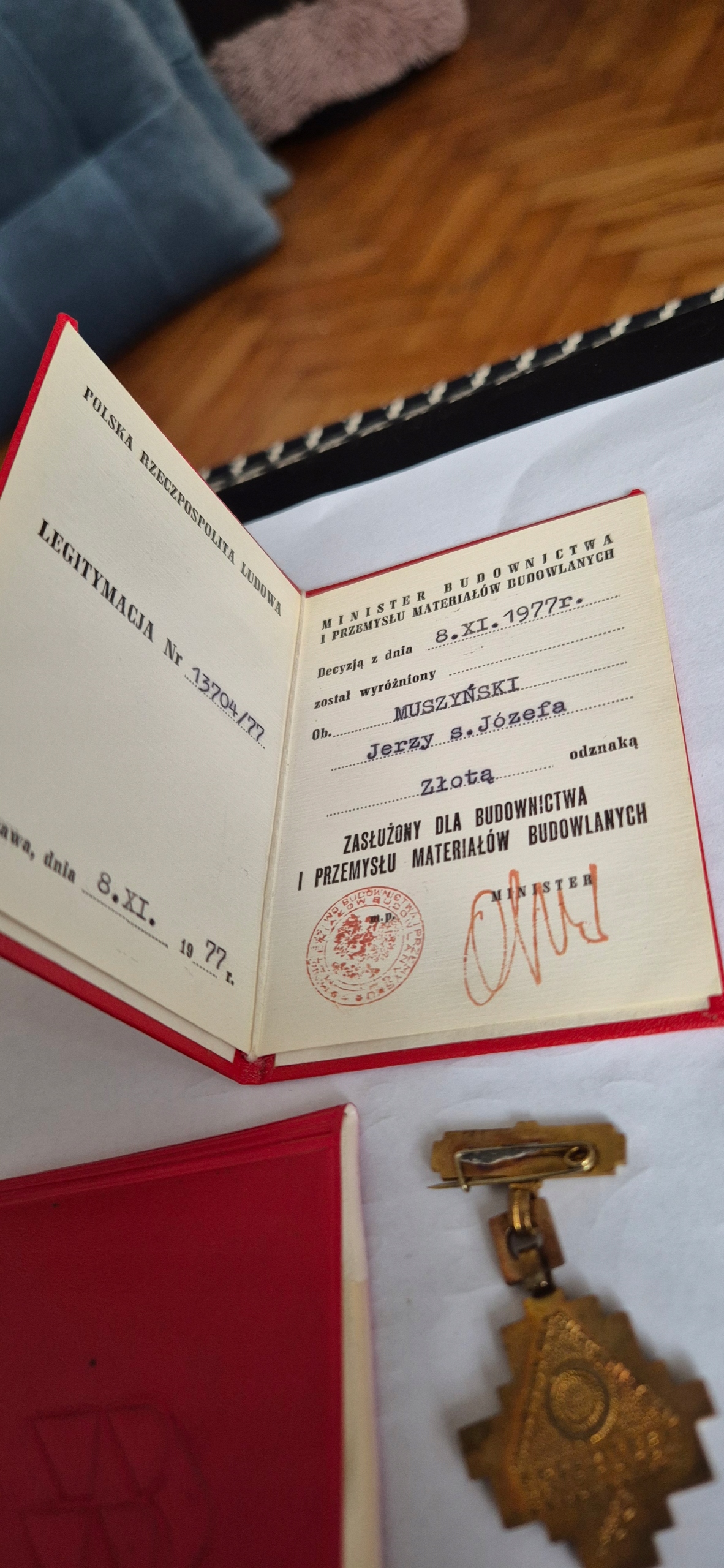 Золотий знак із часів Республіки польської народної Народної, відрізняється для будівництва та промисловості будівельних матеріалів