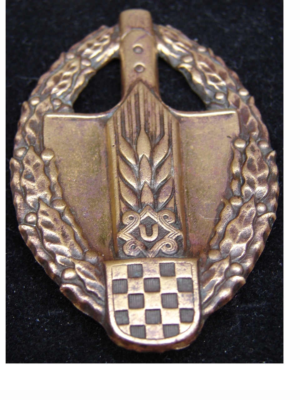 Національна служба праці (dr) надзвичайно рідкісний хорватський золотий знак заслуг першого класу (з тисненої позолоченої бронзи) шпилька на звороті без підпису - типовий продукт компанії Braca Knaus приблизно 1943 b>рік.