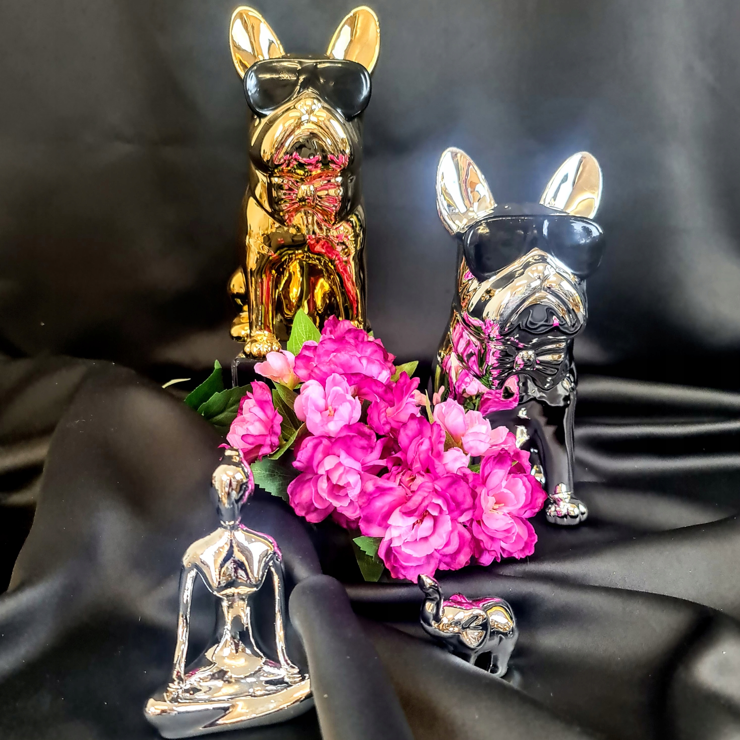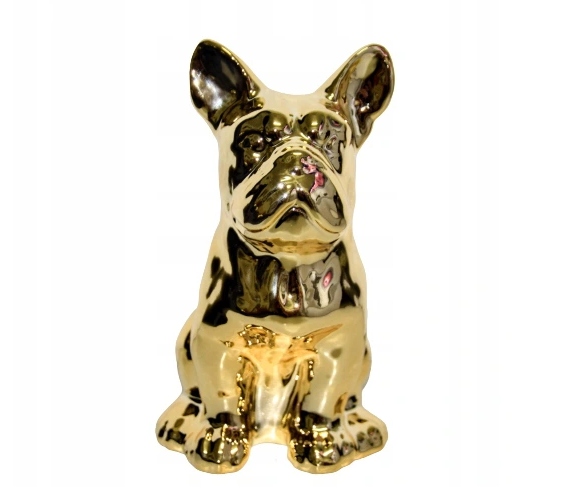 Красива керамічна скарбничка для бульдога з глянцевими скельцями. Скарбничка має силіконову кришку, тому її не потрібно розбивати, щоб дістатися до вмісту.