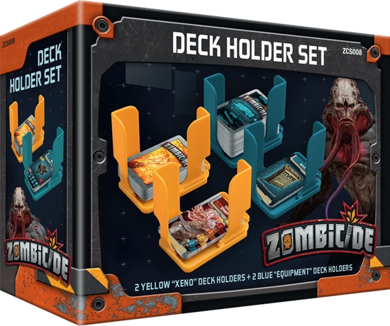 зомбіцид: Invader - набір тримачів на палубі Включає чотири тримачі настилу, виготовлені з міцного пластику, розділених на два різні кольори. Будівництво тримачів настилу дозволяє їм утримувати або 190 беззаперечних карт, або до 105 рукавів.