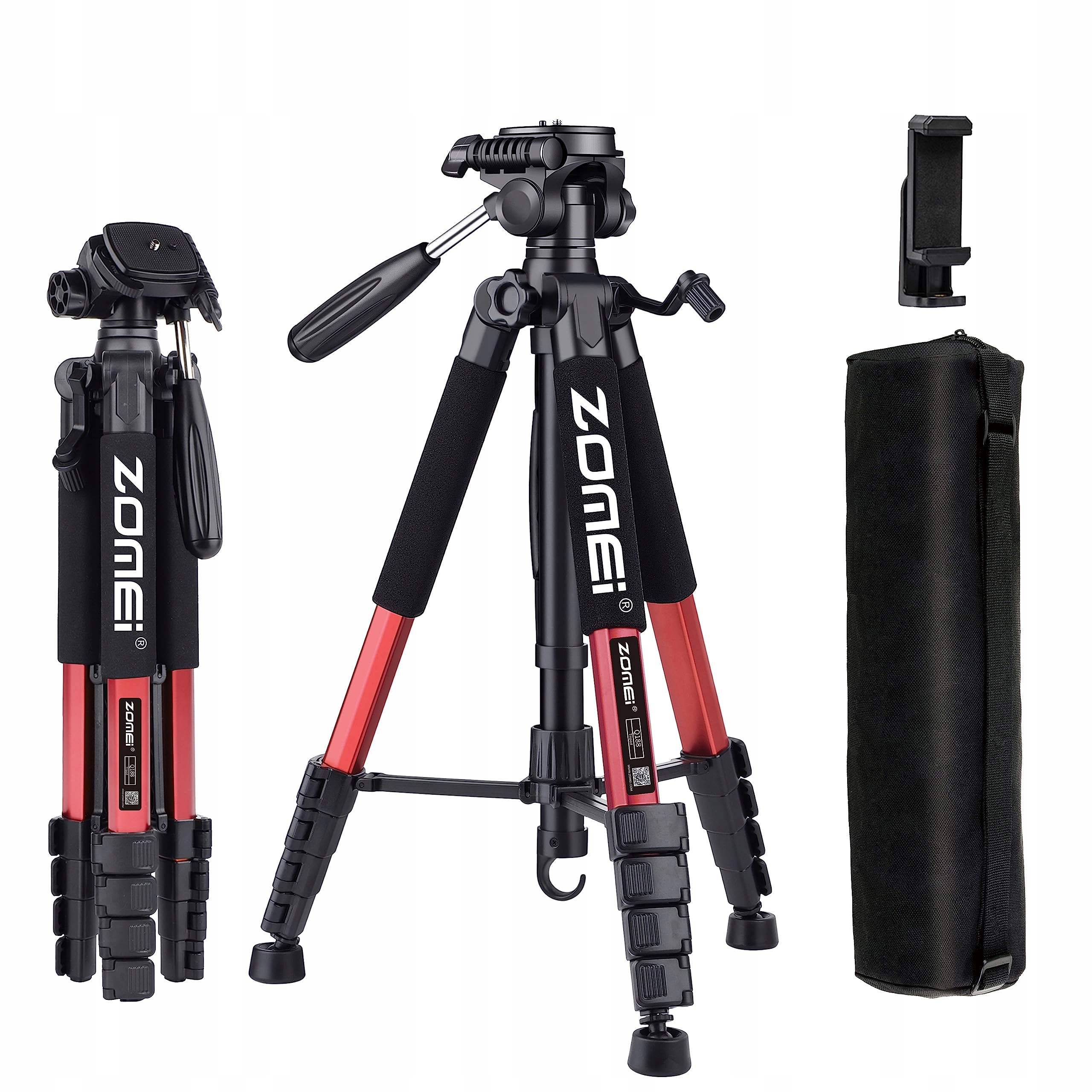 Zomei 188 см Stativ Важкий штативний стенд з високим штативом, професійне подорож відеозйомки MIT DSLR-Kameras, Handys, Projector, Fernglas, Presentive (ROT)