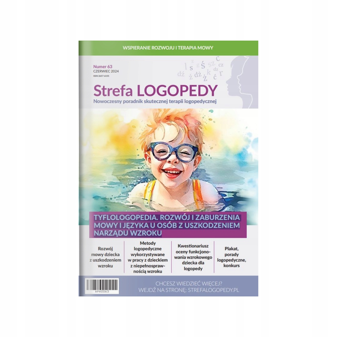 У червні "зона логопедної терапії" автор Магдалена Кокот-Рідбінська піднімає тему логопедної терапії людей із пошкодженням зору. Зміст, представлений у журналі, є особливо цінним, оскільки тифологапедія, тобто діагностика та логопедна терапія сліпих та ваджувальних людей, є невеликою проблемою, яка досі розвинена в невеликій мірі. Перегляд інвалідності впливає на багато клініки логопедної терапії. Яка порада, щоб дати своїм батькам? Для оцінки візуальної функції дитини для логопеда " - інструмент, спрямований на підтримку діагнозу логопедної терапії сліпої або вадійної людини. Автор також підготував пропозиції щодо матеріалів для використання під час вправ, що підтримують розвиток та логопеду для дітей з вадами зору. Плакат для батьків містить цінні підказки про те, як спілкуватися з дитиною, щоб забезпечити йому найкращі умови для розвитку словесної мови.