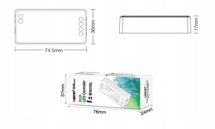 RGB LED щоб продемонструвати свої можливості, окрім джерела живлення, йому також потрібен відповідний драйвер. Контролер RGB забезпечить випромінювання потрібного кольору світла, а також дозволить вам керувати способом відображення кольорів, таким як ефект стробоскопа, плавний або стрибковий перехід через доступну колірну палітру тощо. Удосконалений контролер RGB із елегантним сенсорним пультом дистанційного керування, який обмінюється даними через радіохвилі 2,4G. Рішення з одним пультом дистанційного керування, який зв’язується з багатьма, від одного до чотирьох незалежних контролерів. Тонку версію було зменшено, тому ми можемо використовувати контролер, не займаючи багато місця.