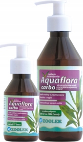 Аквафлора карбо - акваріумний препарат, який забезпечує рослини добовою дозою легкозасвоюваного вуглецю, який є їх основним будівельним компонентом. Препарат призначений для використання як в резервуарах без установок CO2, так і в якості додаткового джерела вуглецю. Аквафлора карбо стимулює ріст рослин і водночас допомагає пригнічувати розвиток водоростей.