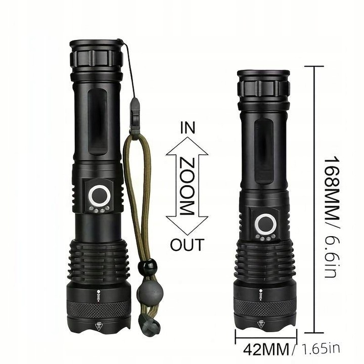 ✅ Сильний світлодіодний тактичний ліхтарик Cree XHP50 Zoom. Ліхтарик виготовлений з алюмінію.