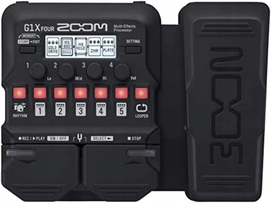 Zoom Multi -four Multi -Four -це понад 70 ефектів та моделі підсилювачів, а також петлю ефекту та барабанна машина. Крім того, багатий бібліотеку ефектів можна завантажити через лабораторію гітари.