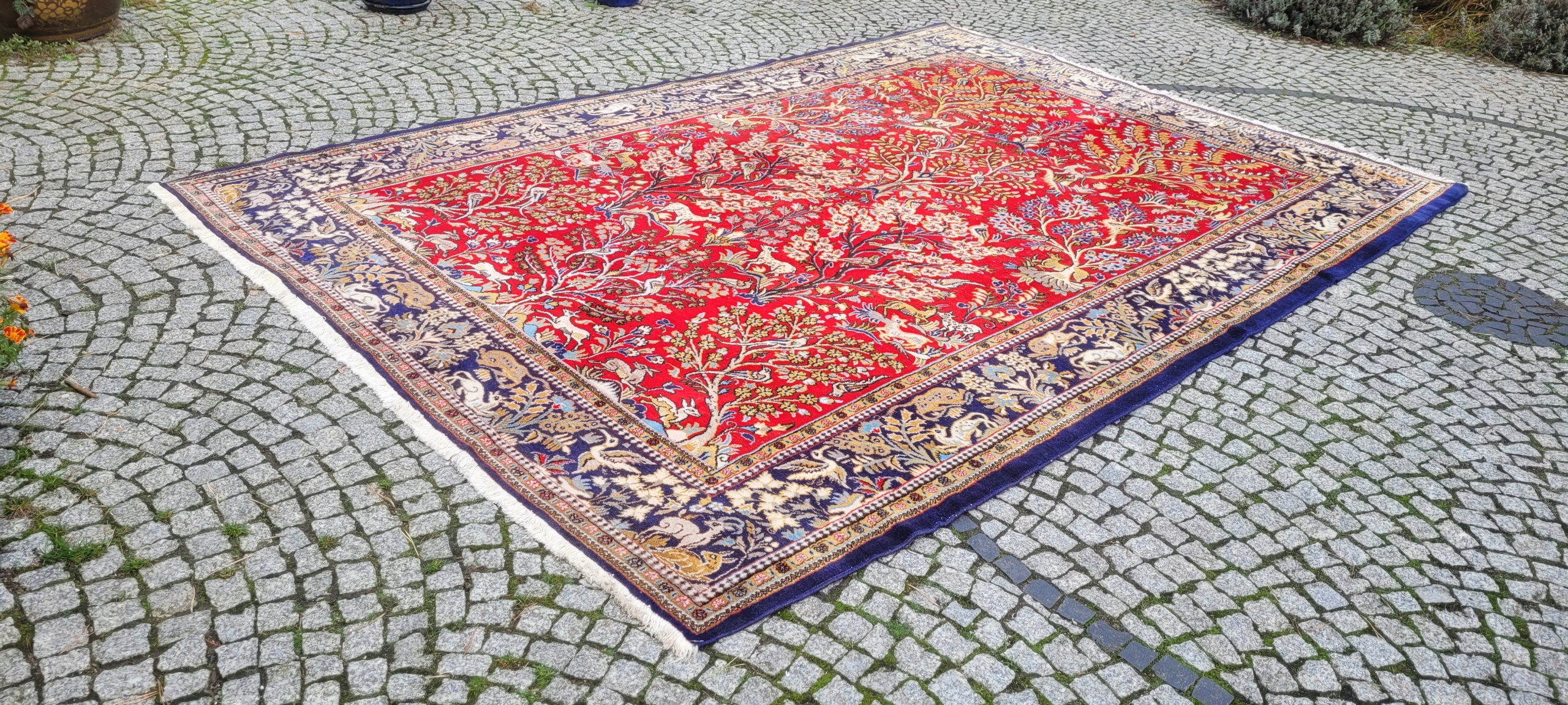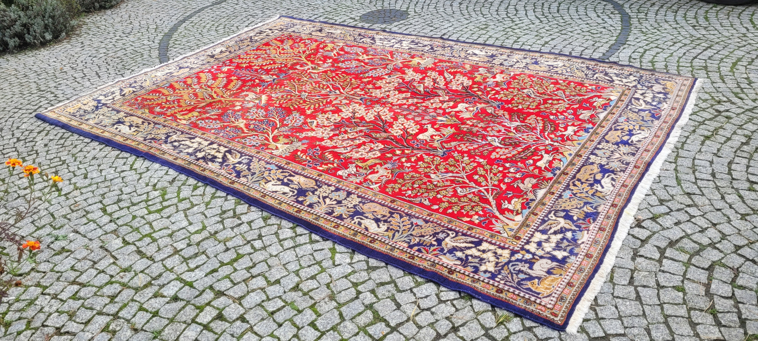 Це килим дуже високої якості. Витканий у майстернях міста Тебріз на північному заході Персії. Він міцний, довговічний. Зображення можуть складатися з центрального медальйона, оточеного арабесками, плакучими вербами чи кипарисами. Інший мотив — чотири пори року, що показує життя перських землеробів навесні, влітку, восени та взимку. Універсальні малюнки роблять цей килим підходящим для багатьох інтер'єрів.
