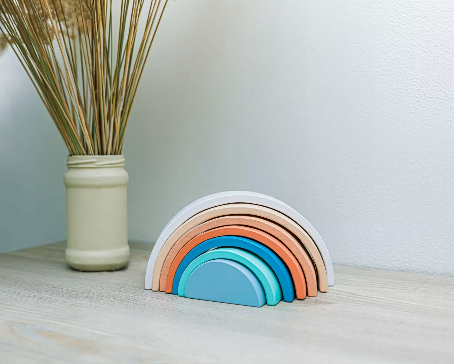Симпатична іграшка веселкових форм і кольорів — чудовий інструмент для розвитку дитячої моторики, уяви та творчих здібностей. З пазлів можна скласти будь-яку форму. Набір містить 7 різнокольорових елементів з високоякісної деревини бука.