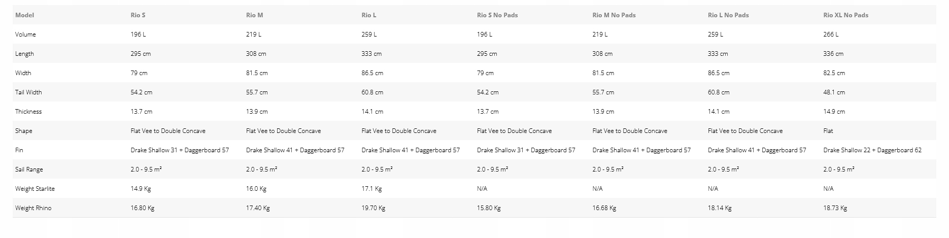 Рахова Rio забезпечує захоплюючий та випускний досвід під час плавання на профіленій палубі, де розріз максимізують задоволення від плавання на дошці. Більш широкий дзьоб, довгі вирізання, оптимізований профіль та ефективна лінія рокера покращують водіння завдяки більшій слайді, стабільності, адгезії та простоті входу в слайд.