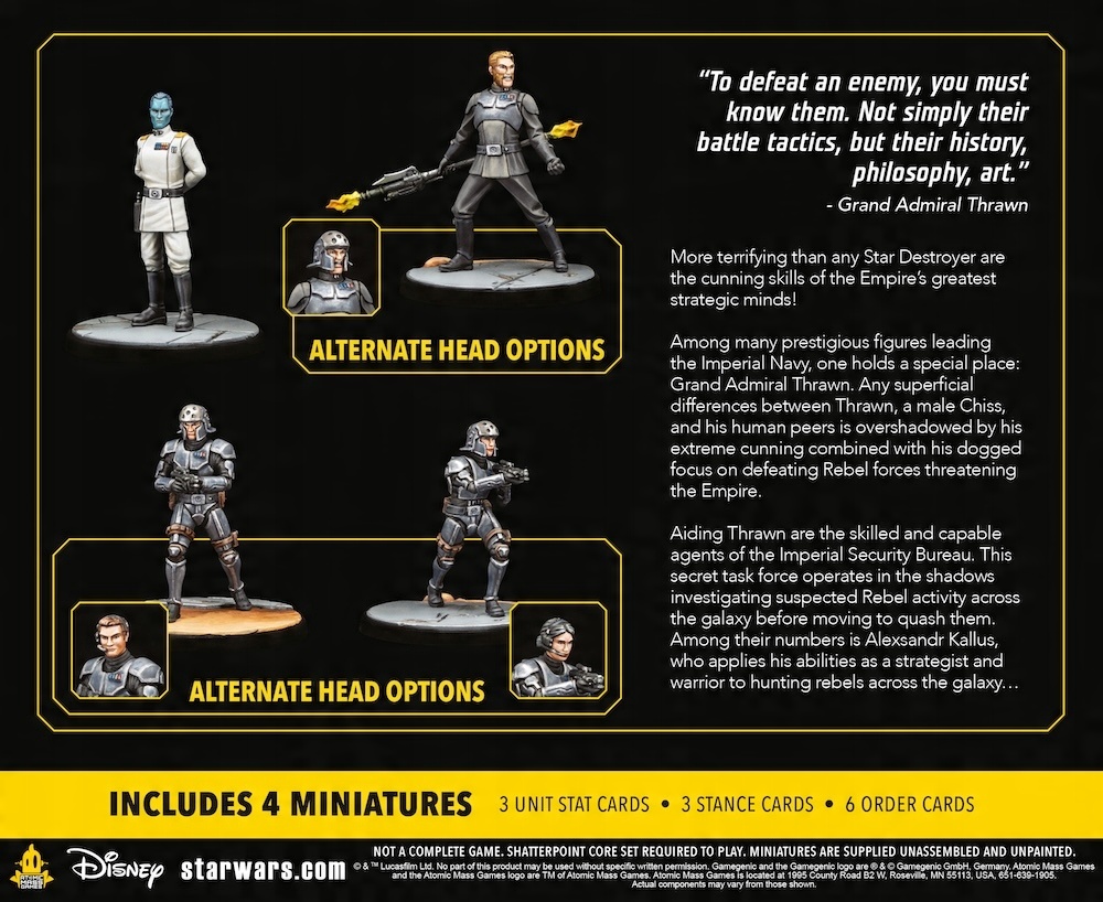 Серед багатьох важливих фігур, що командують флотом Імперії, є суттєво виділяється - великим адміралом Трела. Усі поверхневі відмінності між Thrawn, Chiss та його людьми затьмарюються його незвичайною хитрістю в поєднанні з впертим рішучістю у перемозі про сили повстанців, що загрожують імперії. Thrawn допомагає кваліфіковані агенти бюро імператорської безпеки. Ця секретна група завдань вивчає підозрілі рухи повстанців від приховування, щоб нарешті здивувати та знищити їх. Серед них - Alexsandr Kallus, який, використовуючи свої здібності стратега та воїна, відстежує повстанців навколо Галактики ...