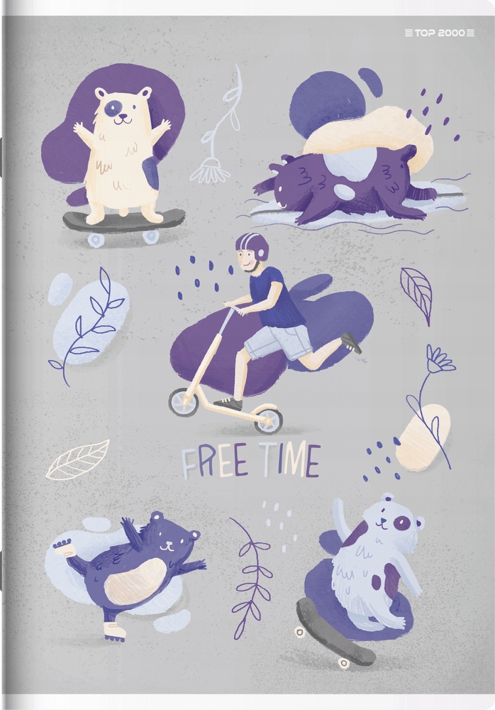 10 зошитів TOP 2000 A5 32 аркуші, 64 сторінки, сітка з полями, тварини