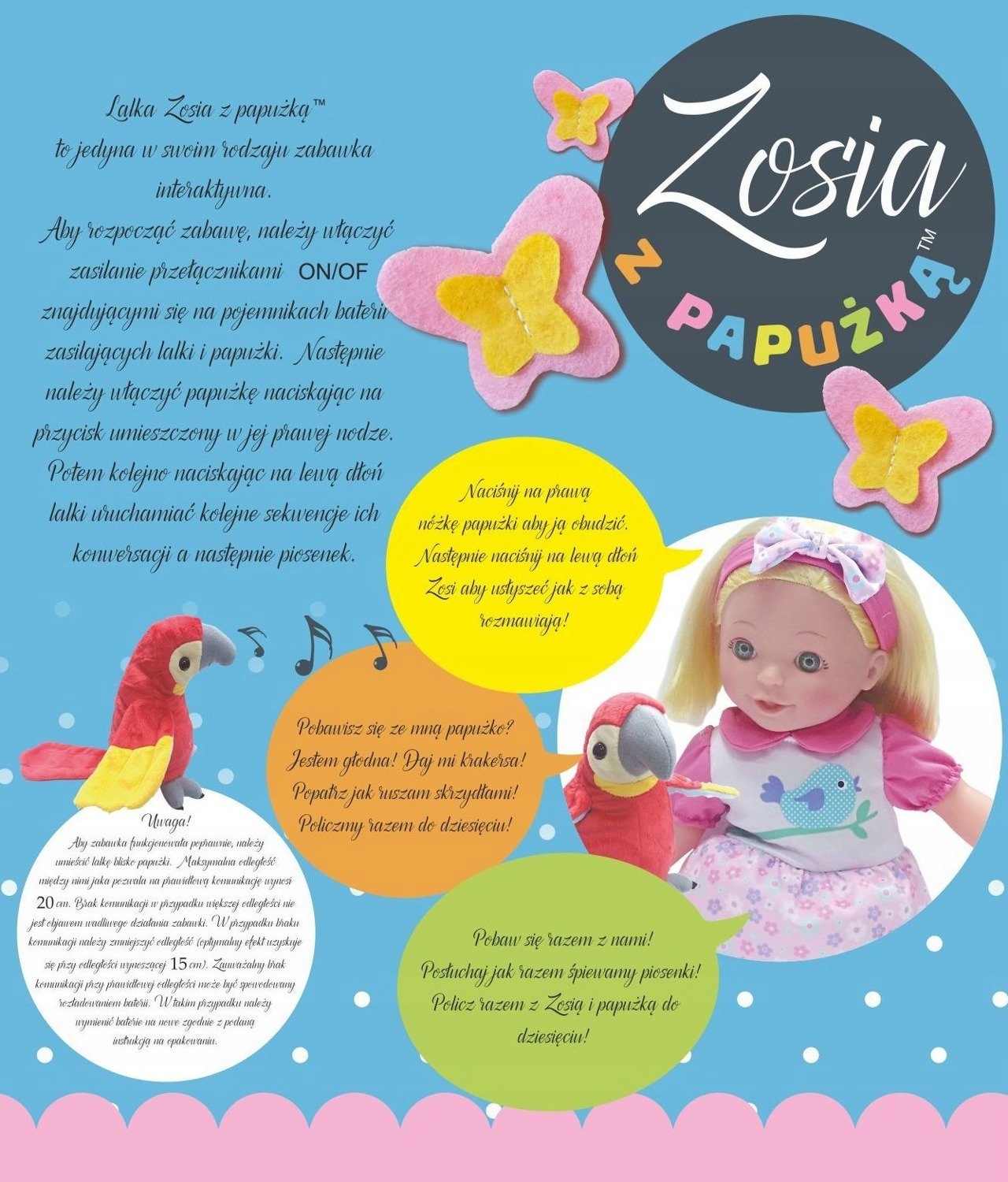 Zosia Doll з папугою, інтерактивна освіта каже PL