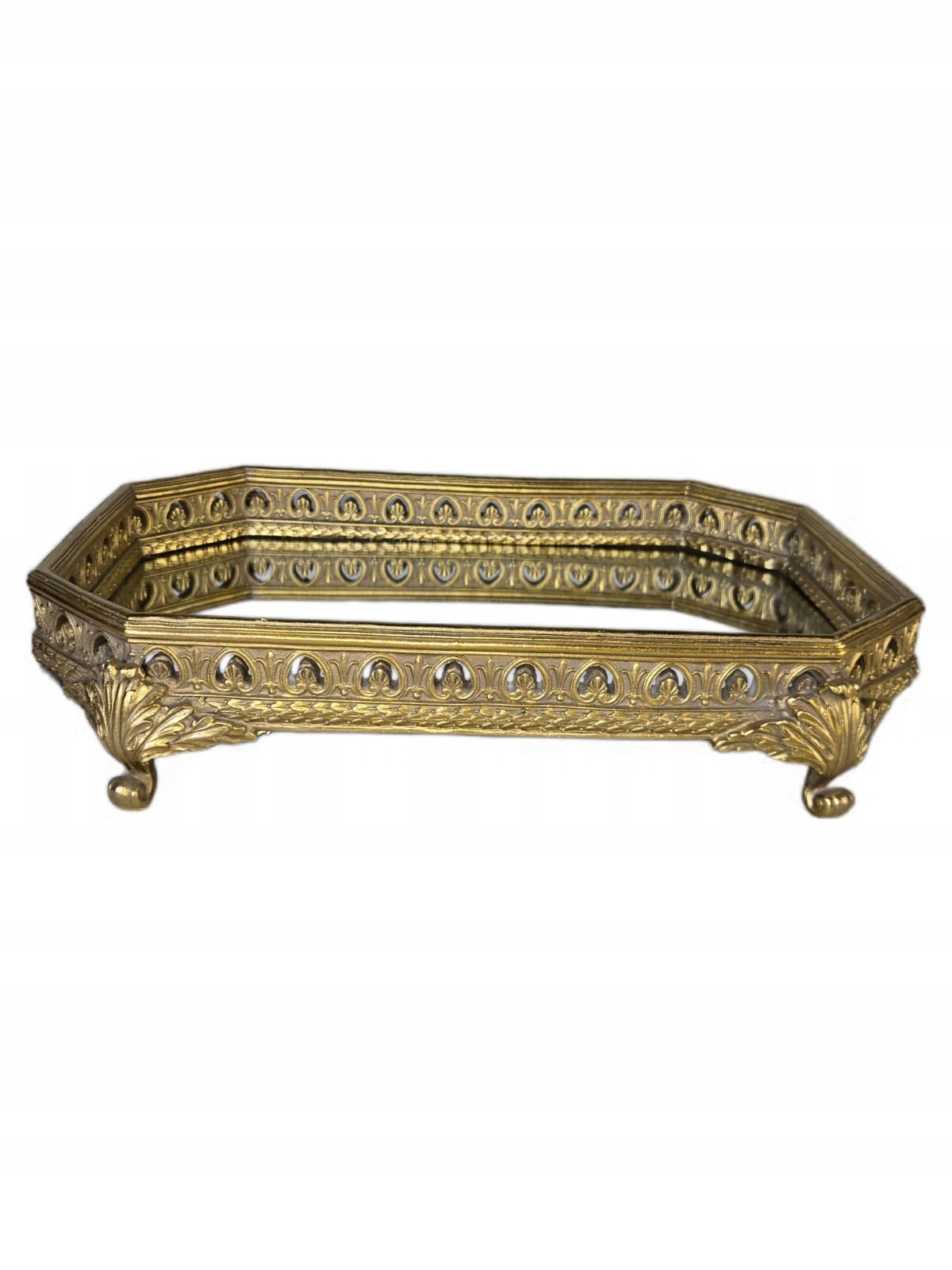 Złota Dekoracyjna Taca Lustrzana Galanteria Stołowa Patera Szkatuła
