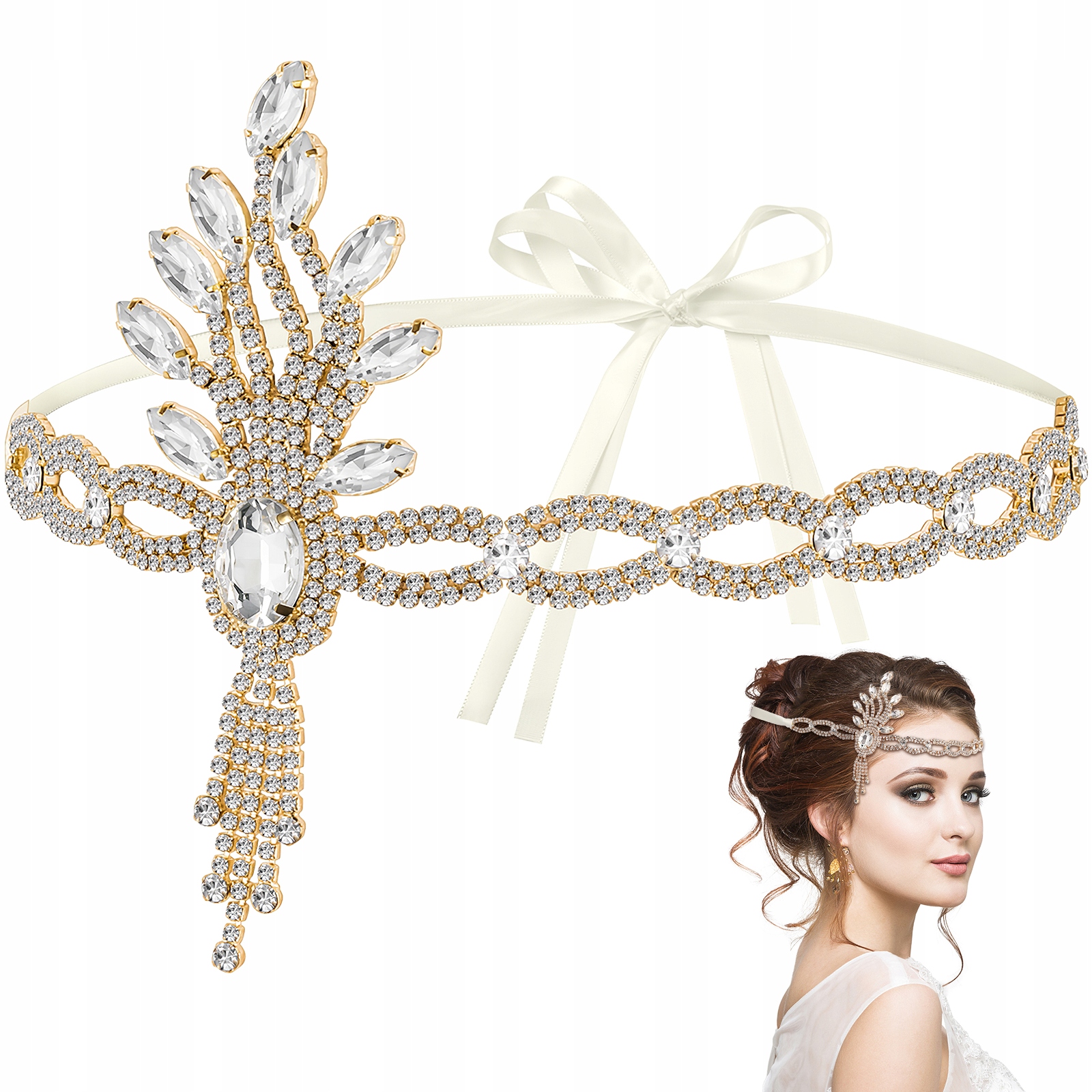 ZŁOTA OPASKA ŚLUBNA Z KRYSZTAŁAMI - ELEGANCKA OZDOBA.