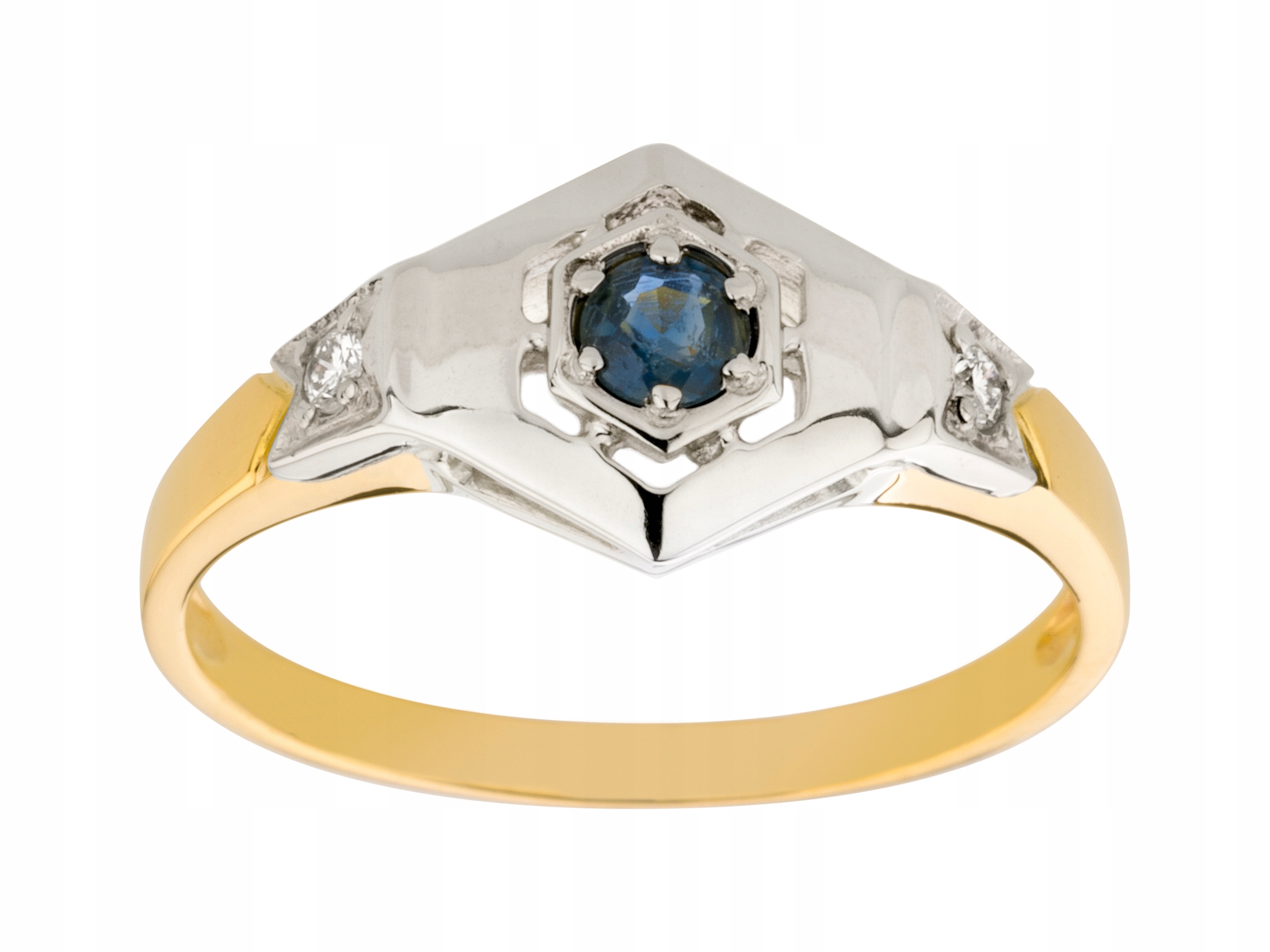 ZŁOTO DWUKOLOROWE 585 z SZAFIREM 2 BRYLANTAMI