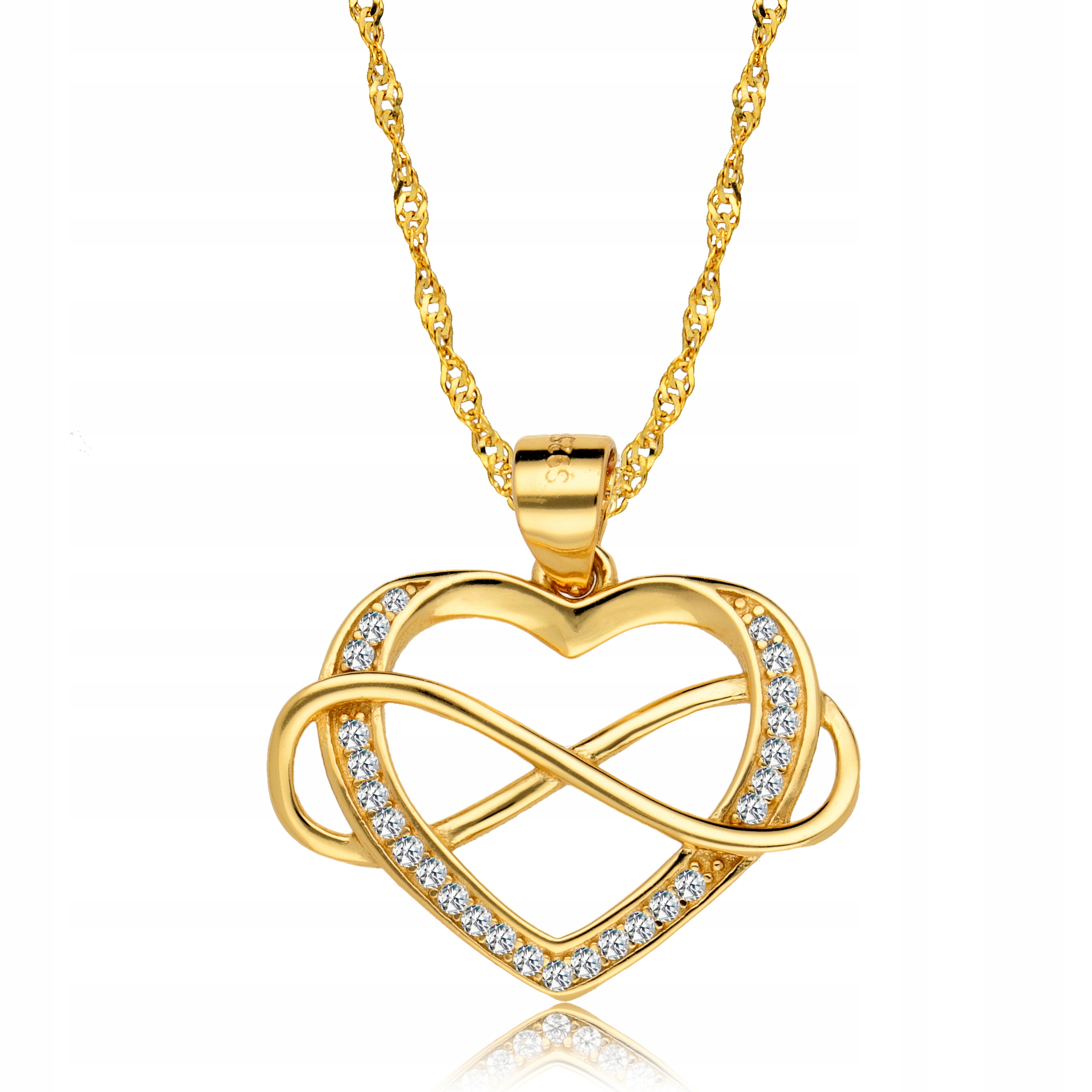 Złoty Naszyjnik 925 Serce Nieskończoność Grawer
