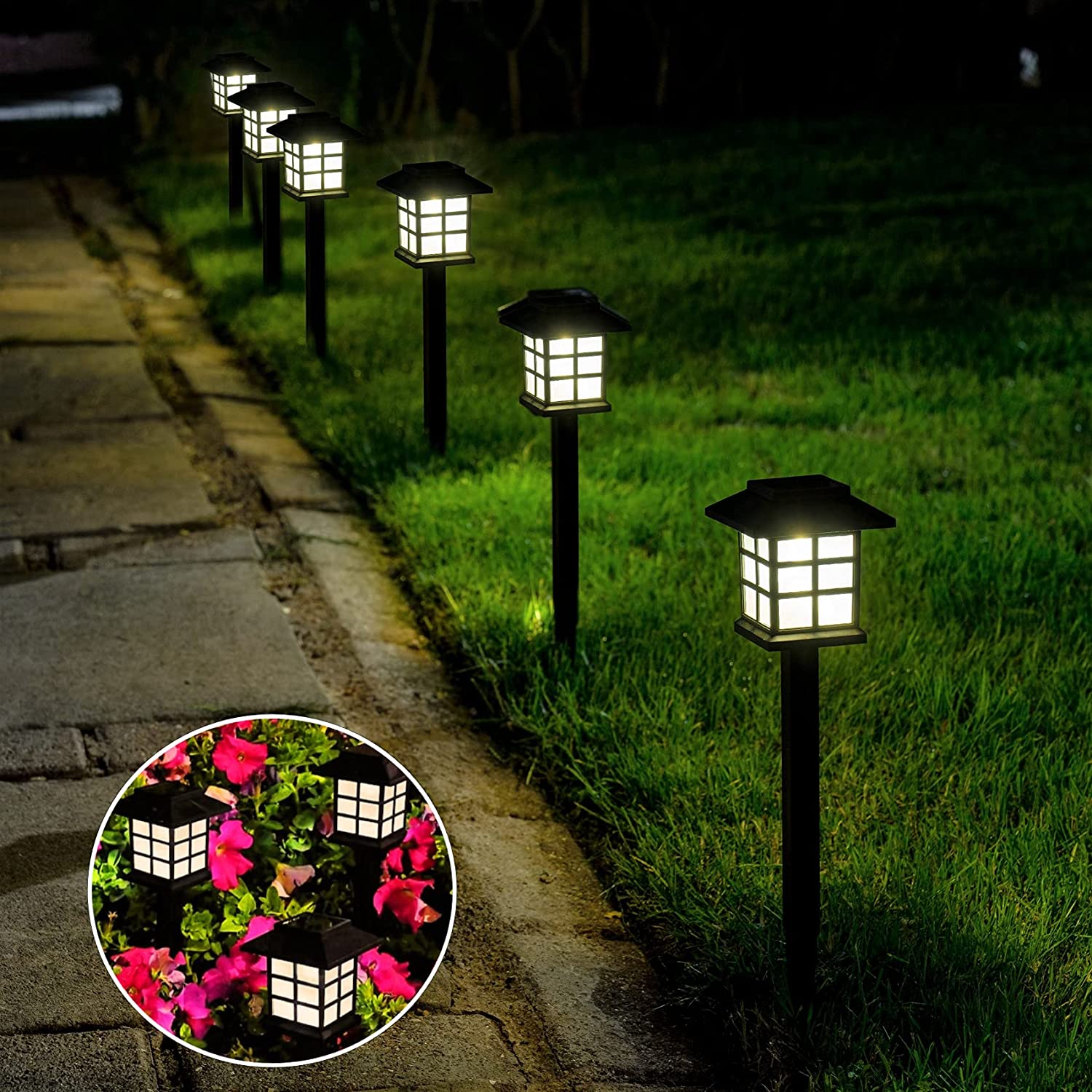 Зовнішні сонячні ліхтарі з 6 комплектів: зроблено з унікальним японським дизайном. Що може бути кращим, ніж прикрасити свій газон і відчути атмосферу, влаштовуючи літні та зимові вечірки. Розмістіть ці сонячні ліхтарі стратегічно вздовж під’їзної доріжки (або на грядках у саду) для максимального задоволення та безпеки.