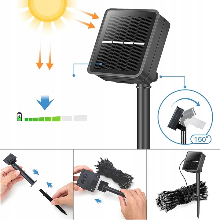 ЗОВНІШНІ ДЕКОРАТИВНІ СОНЯЧНІ ЛАМПИ 10 МЕТРІВ - 100 LED