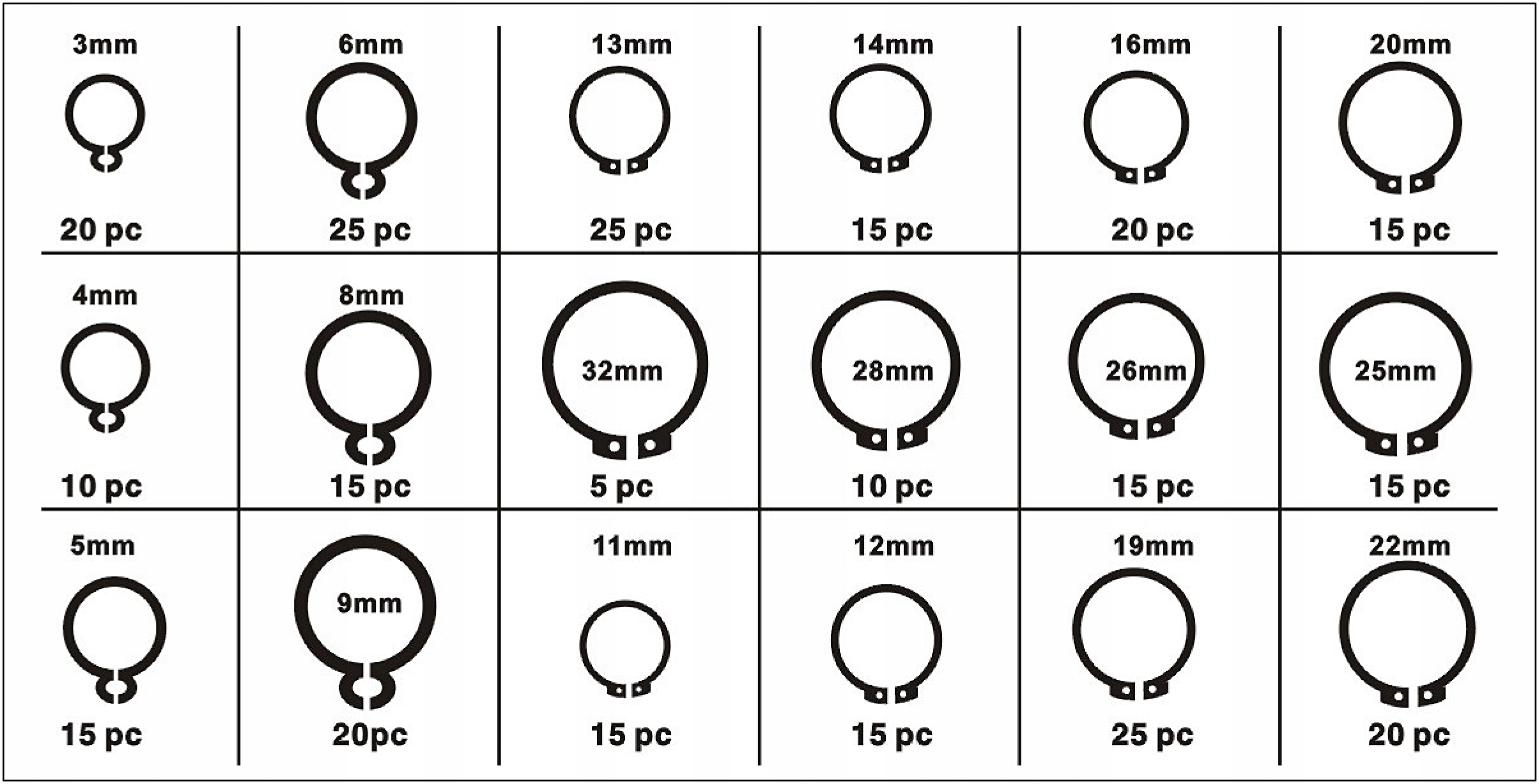 - 11 мм – 15 шт.