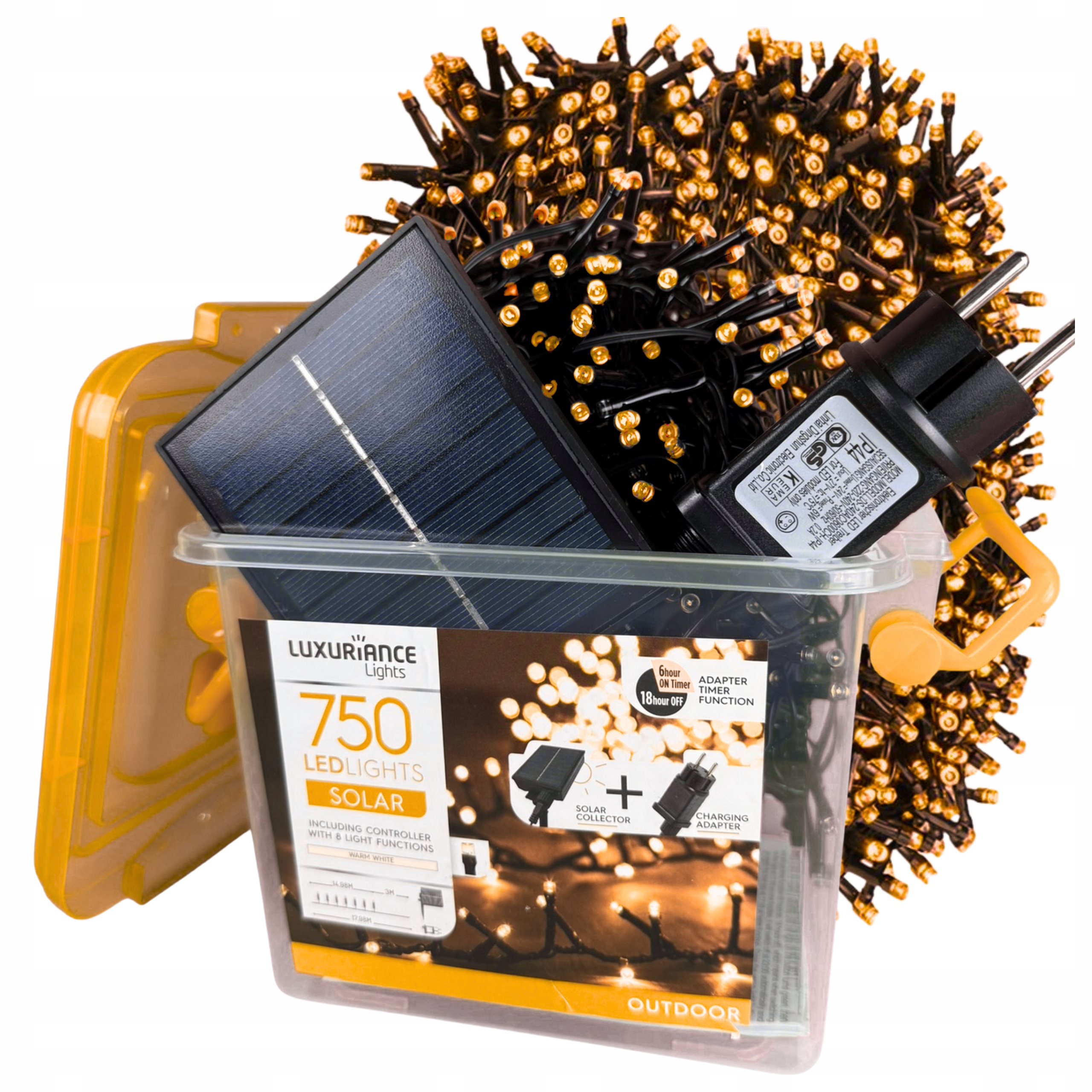 Зовнішні лампи 750LED 2в1 Сонячні + мережевий ланцюг світильники теплі 15м