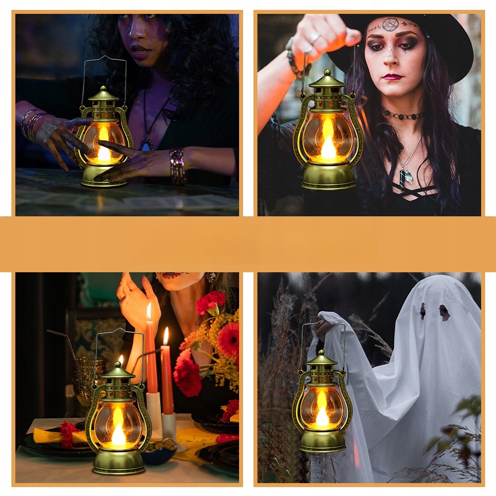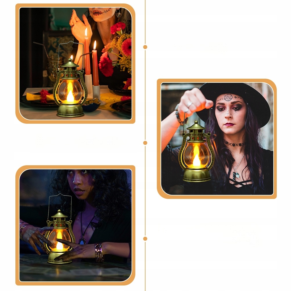 ✅яка може стати чудовим реквізитом для будинку з привидами або вистави. Завдяки своїй універсальності його можна розмістити поза домом як освітлення або просто в кімнаті як прикрасу. Колір функції: як показано. Матеріал: пластик + метал Розміри: 7,5 х 3,5 х 12,5 см. Портативна стимулююча масляна лампа як прикраса вечірки на Хелловін. Чудово підходить для Хеллоуїна