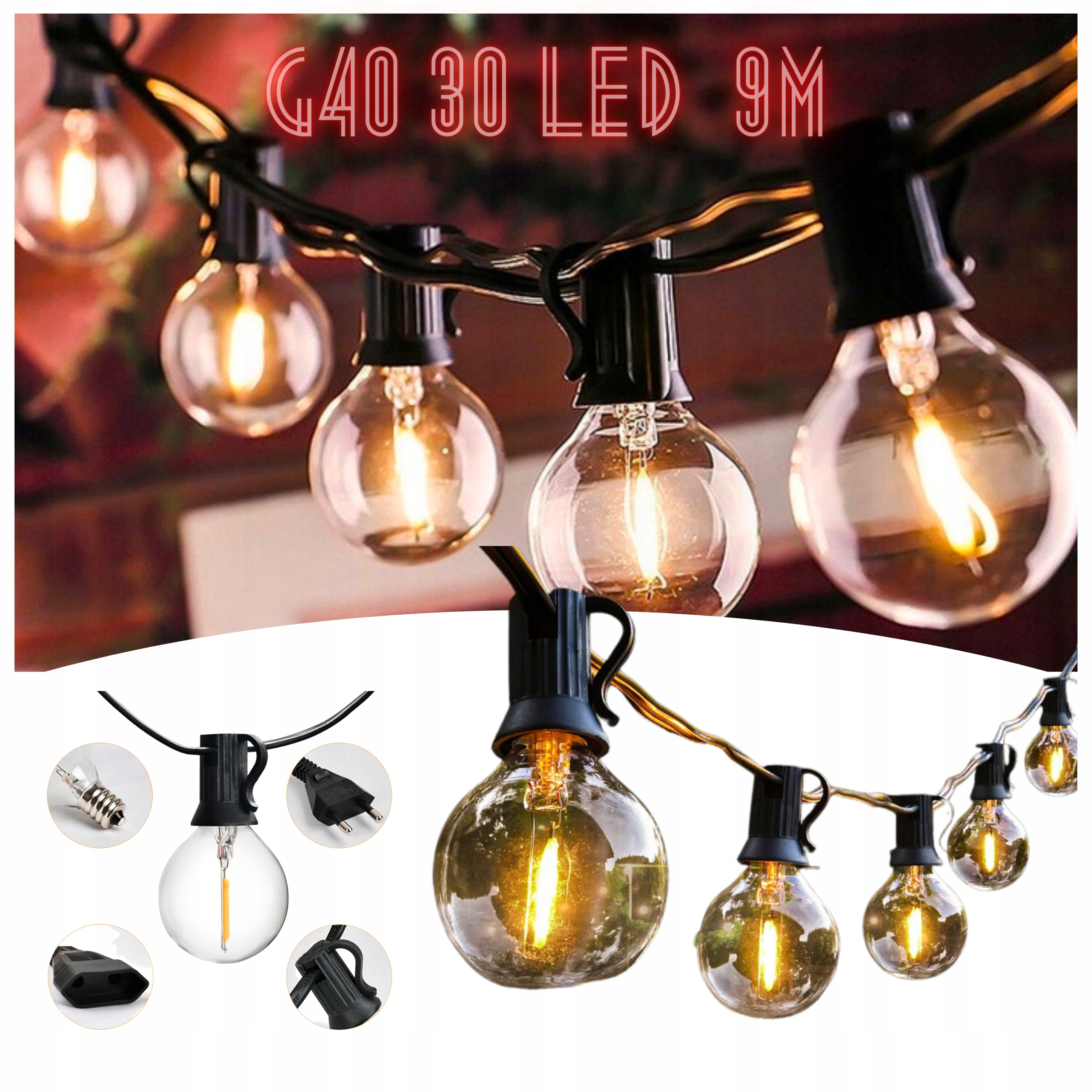 ✔ 30 світлодіодних лампочок G40 І ДОВЖИНА 9 М