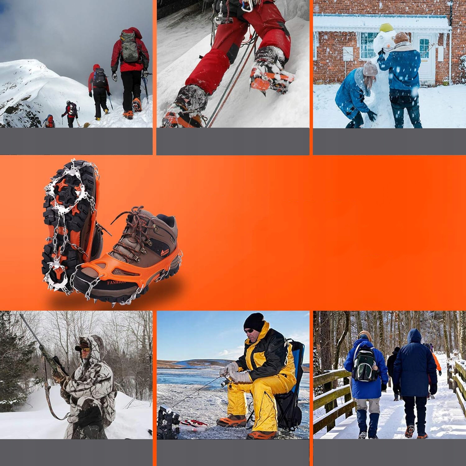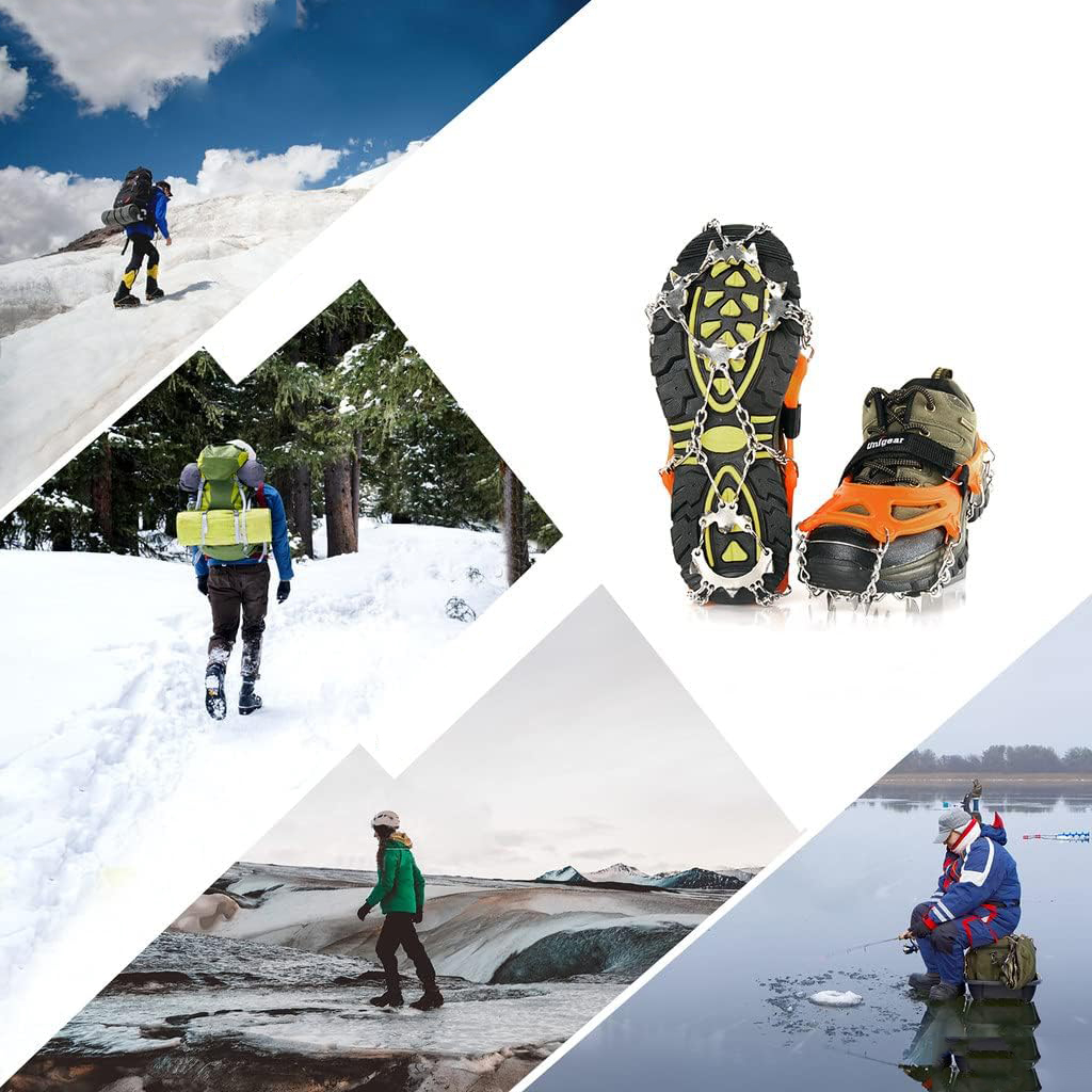 🥾🥾 moca та безпечніші шипи: взуттєві рали з 19 зубами з нержавіючої сталі. Спайки та дизайн подвійного ланцюга роблять його більш міцним і сильнішим, він не іржавий. Ці крижані лози забезпечують відмінну адгезію на різних поверхнях та знижують ризик травм, спричиненого падінням або ковзанням, вони завжди забезпечують безпеку та відсутність пошкодження. Вони підходять для крижаних, сніжних та слизьких умов. становить 4,5-6 мм, що є найгустішим на ринку. Після тестування він може підтримувати гнучкість до -45 ℃, високої гнучкості і не порушується і не порушує. Регульовані та безпечні ремінці для взуття легко надягають і знімають, що забезпечує дуже тривалий комфорт та довговічність. Слід і т. Д. Ці крижані ручки підходять для чоловіків і жінок різного віку, підлітків, дорослих, старших. Це чудовий зимовий супутник, щоб бігати по сліду, блукати, підніматися на гірській мові, полювання та риболовлю. Туристичні раки портативні та легкі, ви можете покласти їх у мішок і не зайняти багато місця. Прикріплений пояс забезпечує більший комфорт та безпеку.