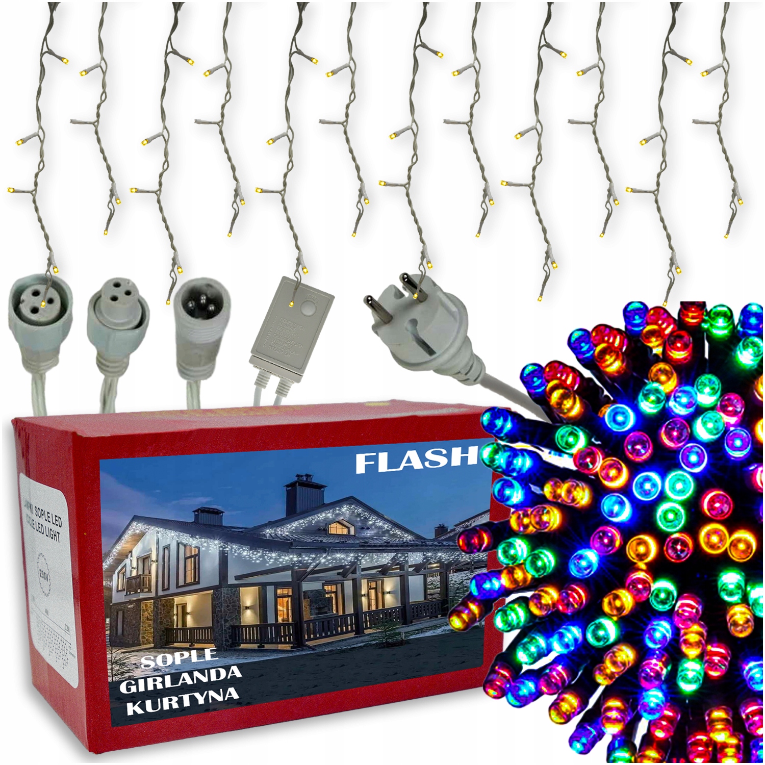 ЗОВНІШНІ РІЗДВЯНІ СВІТЛІ, ПРОГРАМАТОР ICILES 500 LED, БІЛИЙ КАБЕЛЬ