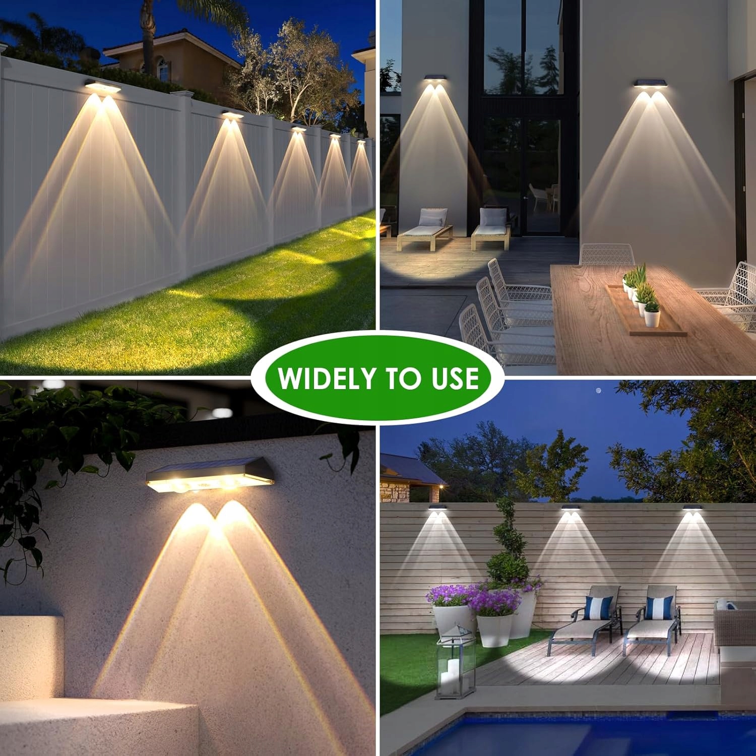 Сонячні автінгові зовнішні світильники 4 ПК, зовнішня сонячна стінова лампа IP65 Водонепроникна, 3 режими світла, сонячна стінова лампа назовні, сад, освітлення огорожі, [Енергетичний клас A]