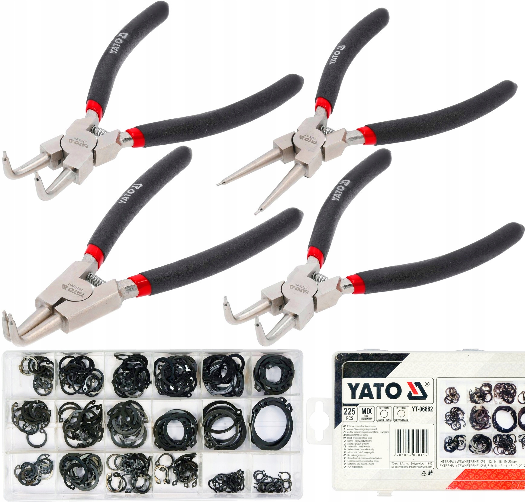 ЩИПЦІ YATO ЗОВНІШНІ ВНУТРІШНІ 150 ММ + КІЛЬЦЯ ГНІЗДОВІ 225EL