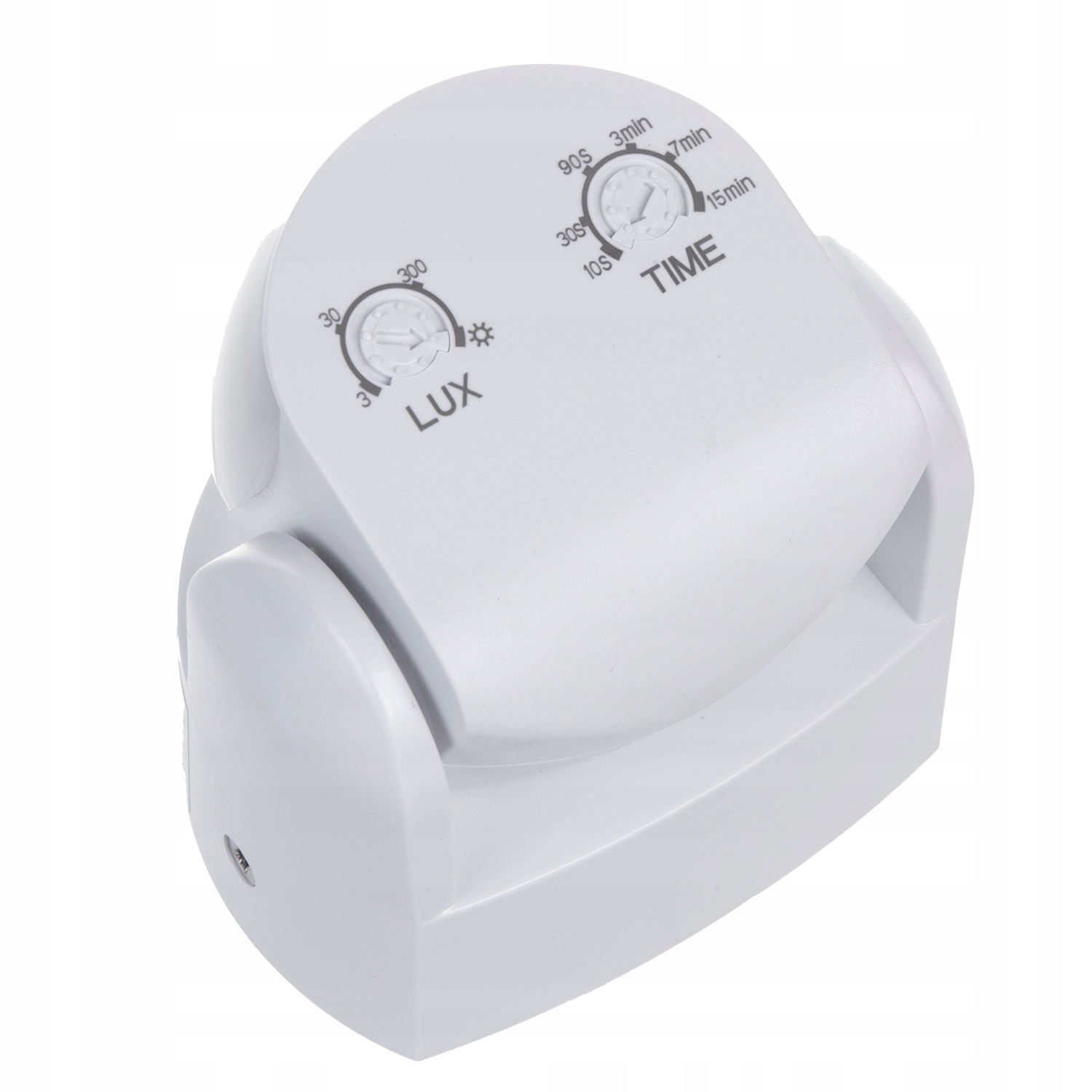 Пристрій може працювати як вночі і протягом дня. Ручка TIME використовується для регулювання часу освітлення (приблизно від 10 секунд до 15 хвилин). Ручка LUX встановлює чутливість зовнішнього освітлення (діапазон від 3 до 2000 LUX). Якщо зовнішнього освітлення недостатньо, і ми хочемо, щоб пристрій працював і вдень, і вночі, встановіть ручку в денне положення (значок сонця).