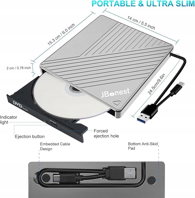 Зовнішній тип CD/DVD USB 3.0 C -C -це універсальний пристрій 5 в 1, який поєднує функції запису читання та запису. Завдяки інтерфейсам типу C та USB 3.0 він забезпечує швидку та стабільну передачу даних, що робить його ідеальним як для користувачів ноутбука, так і для настільних ПК. Підтримує різні формати, включаючи DVD-ROM, DVD-Video, CD-R/RW та CD-ROM, гарантуючи повну сумісність з багатьма носіями.