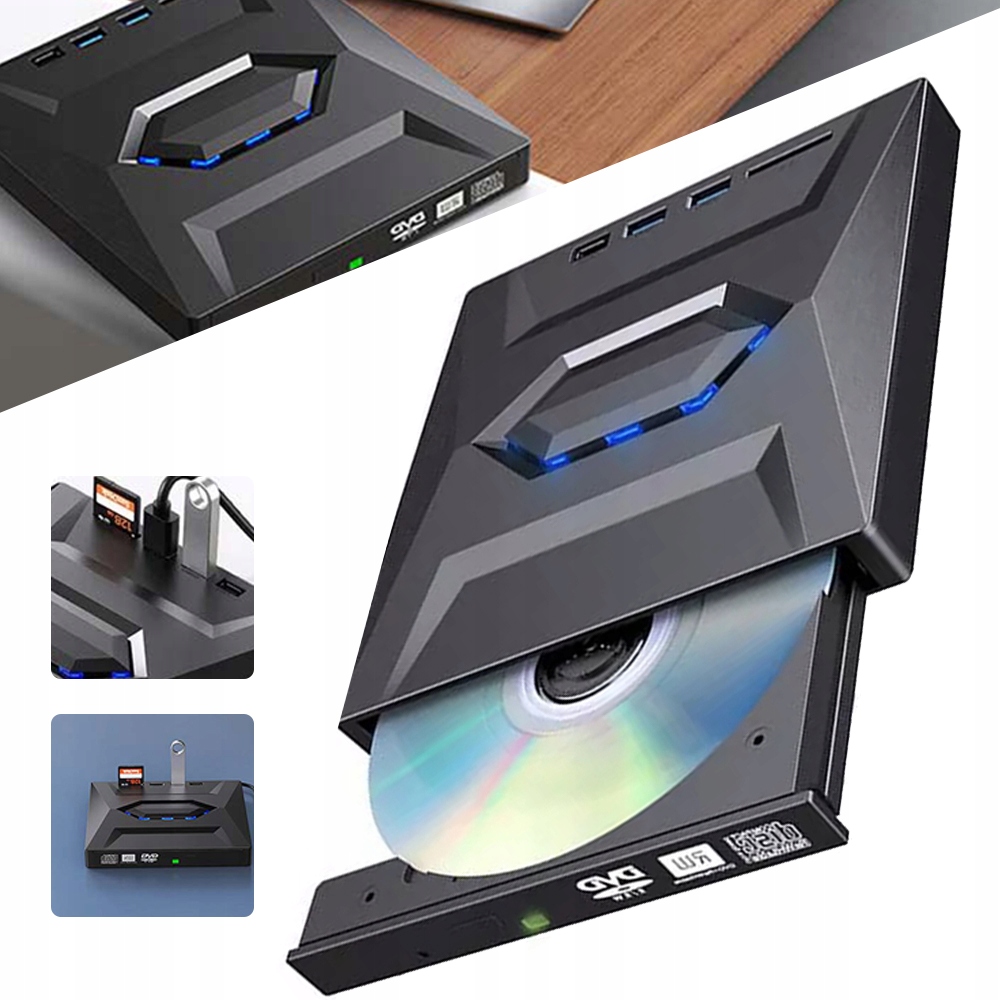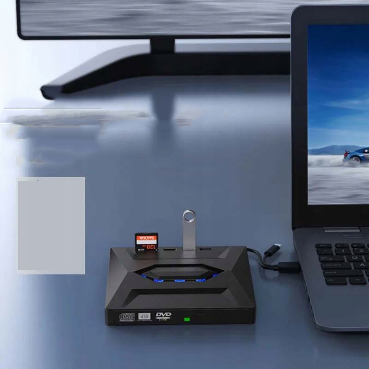 - Пристрій можна використовувати як пристрій для зчитування CD/DVD, записувач, концентратор USB 3.0, пристрій для зчитування карт SD і TF.