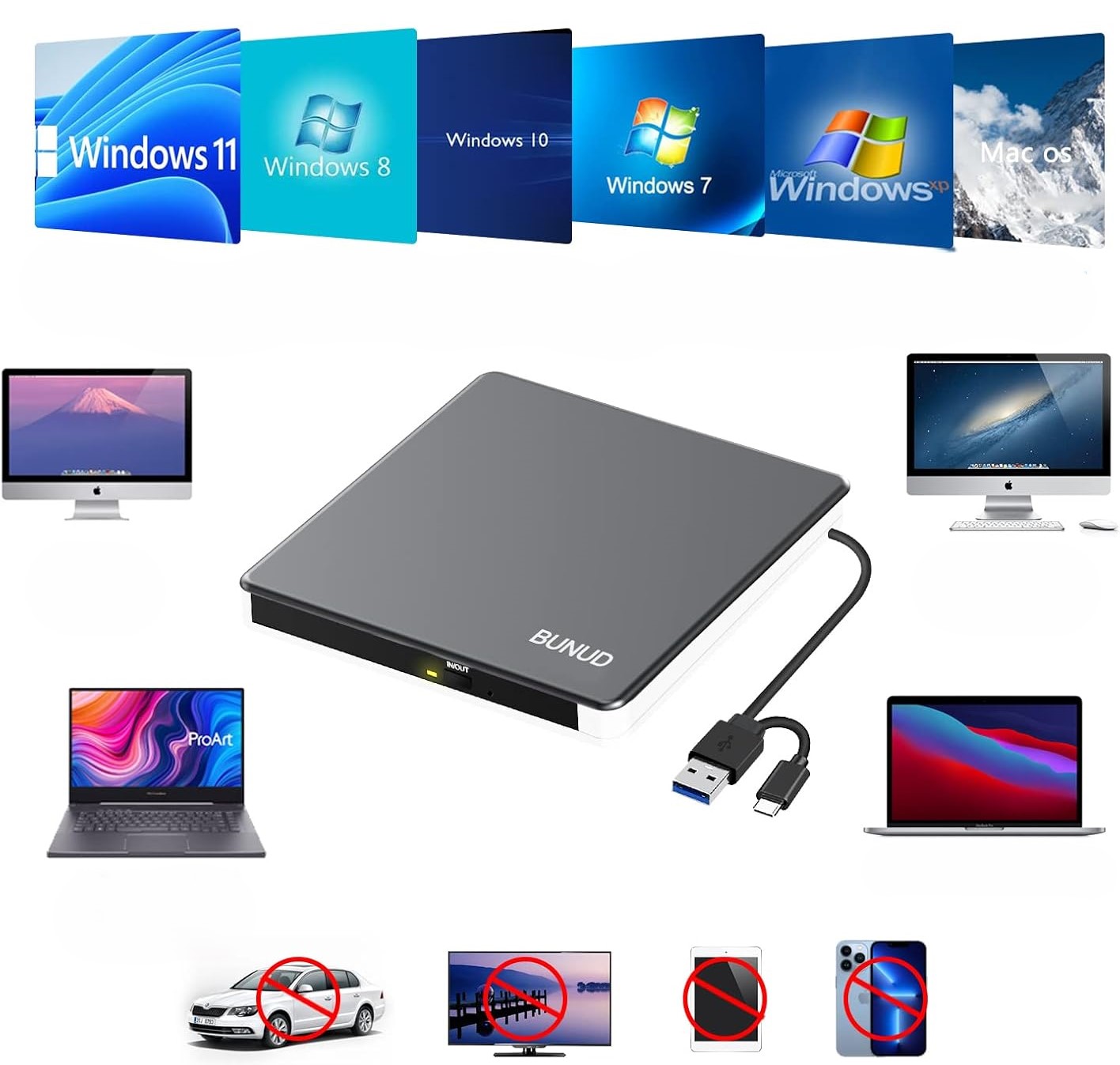 ✅ пристрій для читання та запису CD/DVD? Bunuda USB 3.0 та Type C - ідеальний вибір! Пристрої для ноутбуків з Windows 11/10, MacBook Pro/Air та іншими пристроями ПК, забезпечують продуктивність та зручність використання. ✨