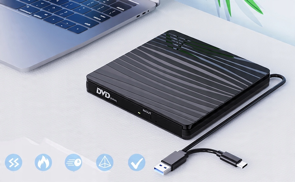🔶🔶Цей ультратонкий і легкий зовнішній DVD-рекордер оснащений вбудованим кабелем. Вбудована конструкція кабелю, яку неможливо легко втратити. Він стандартно постачається з фізичною кнопкою виймання, тож вам не доведеться турбуватися про те, що ваш диск застрягне в цьому пристрої для запису DVD/CD. Цей зовнішній компакт-диск для вашого ноутбука легко носити чи зберігати вдома чи в дорозі.