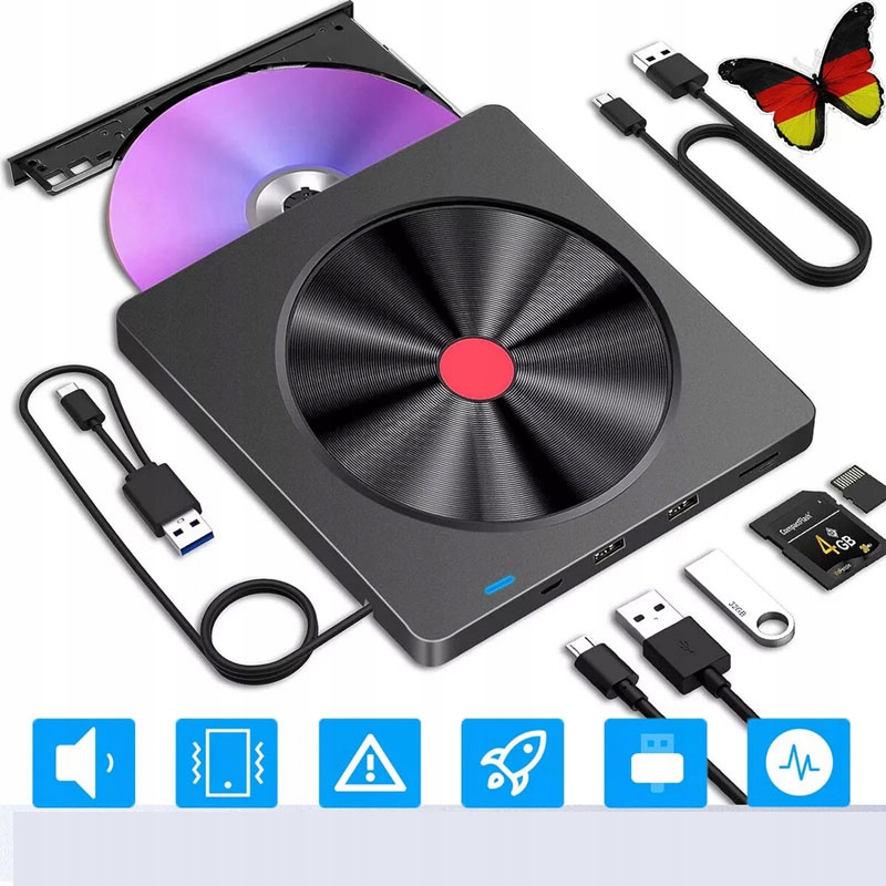 【Універсальний записувач】 Цей записувач має два інтерфейси USB 3.0 і Type-C, слот для карт SD/MicroSD і два порти USB 2.0. Відповідає всім вашим потребам. Вбудований пристрій для читання карток SD/MicroSD у зовнішньому DVD-приводі ідеально підходить для передачі файлів між картками пам’яті та комп’ютером. Після вставлення картки SD/TF дані з картки SD/MicroSD можна дуже швидко перенести на комп’ютер без додаткових пристроїв (Примітка: карти SD і TF не можна використовувати одночасно).