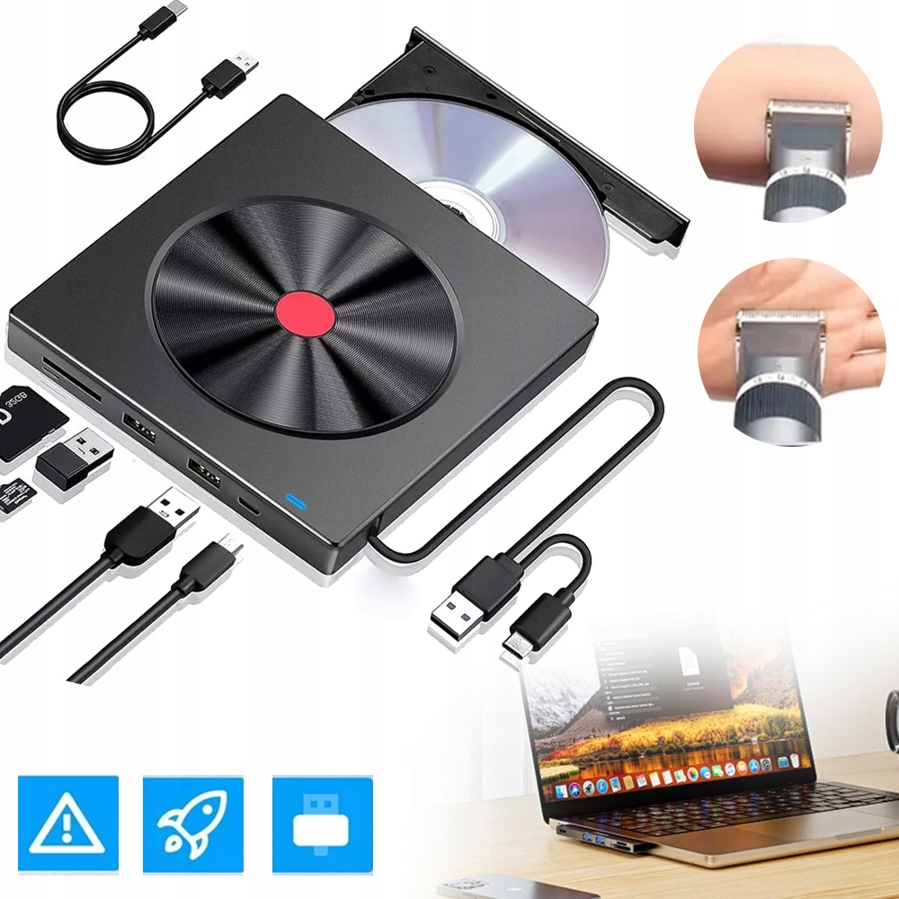 【Записувач CD/DVD】Цей зовнішній записувач підтримує запис і читання компакт-дисків і DVD-дисків. Він підтримує різні формати дисків, включаючи CD-R, CD-RW, CD-ROM, DVD-R, DVD-RW, DVD-RAM і DVD-RW. Примітка. Формати 3D, 4K і 2K Blu-ray і DVD не підтримуються!