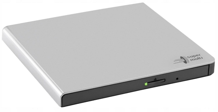 Сріблястий зовнішній пристрій для запису CD/DVD LG