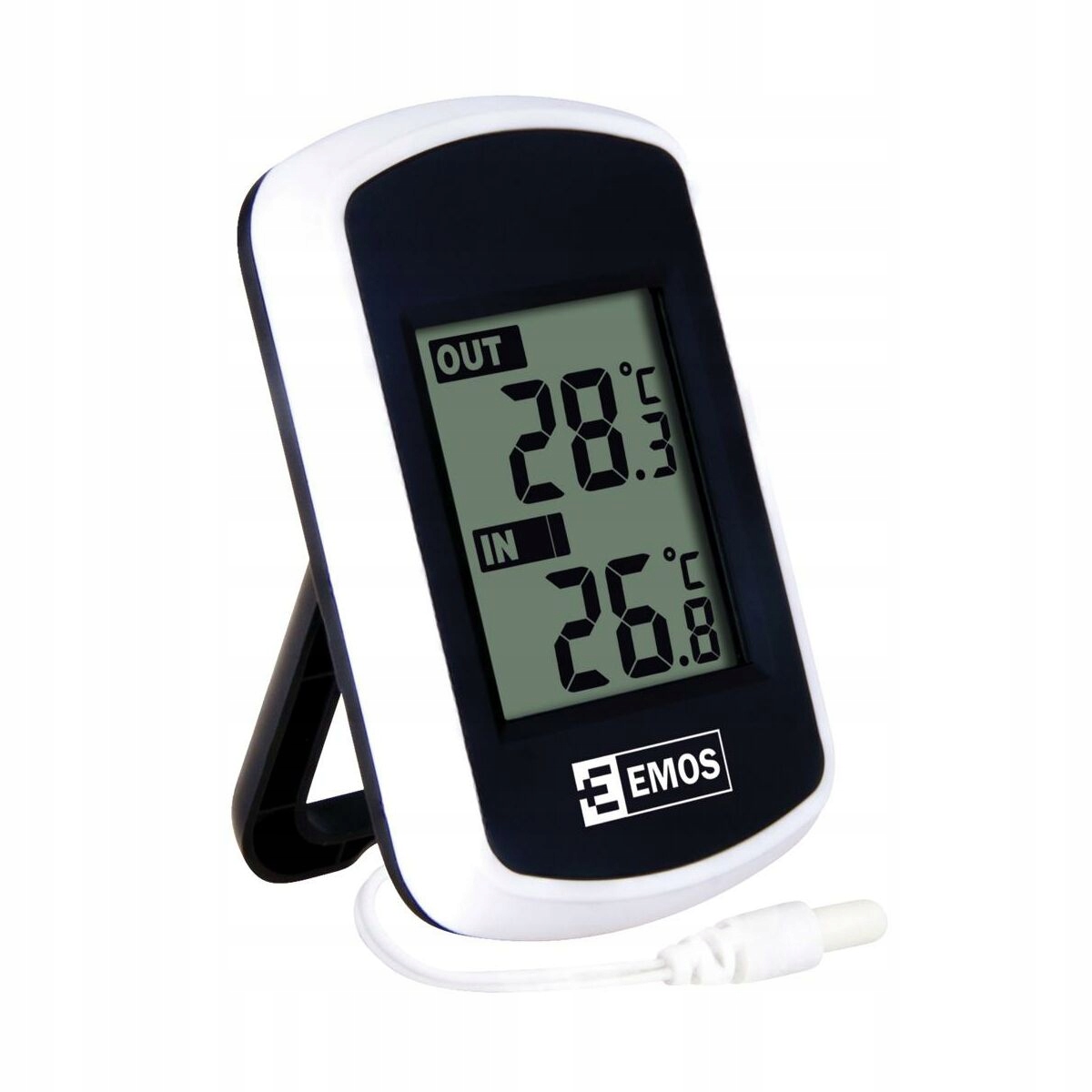 Провідний термометр з дисплеєм внутрішньої та зовнішньої температури. Термометр має дротовий зонд довжиною 2 м.